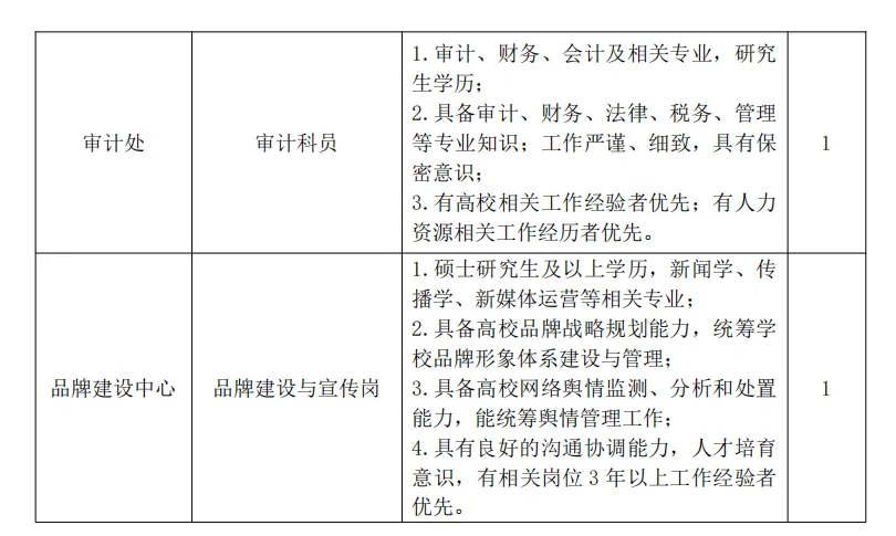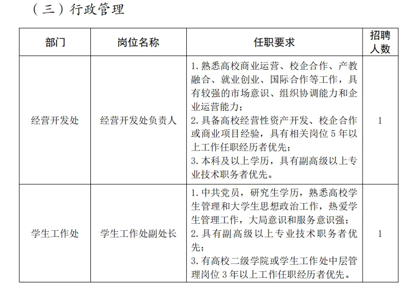 三、招聘岗位及要求