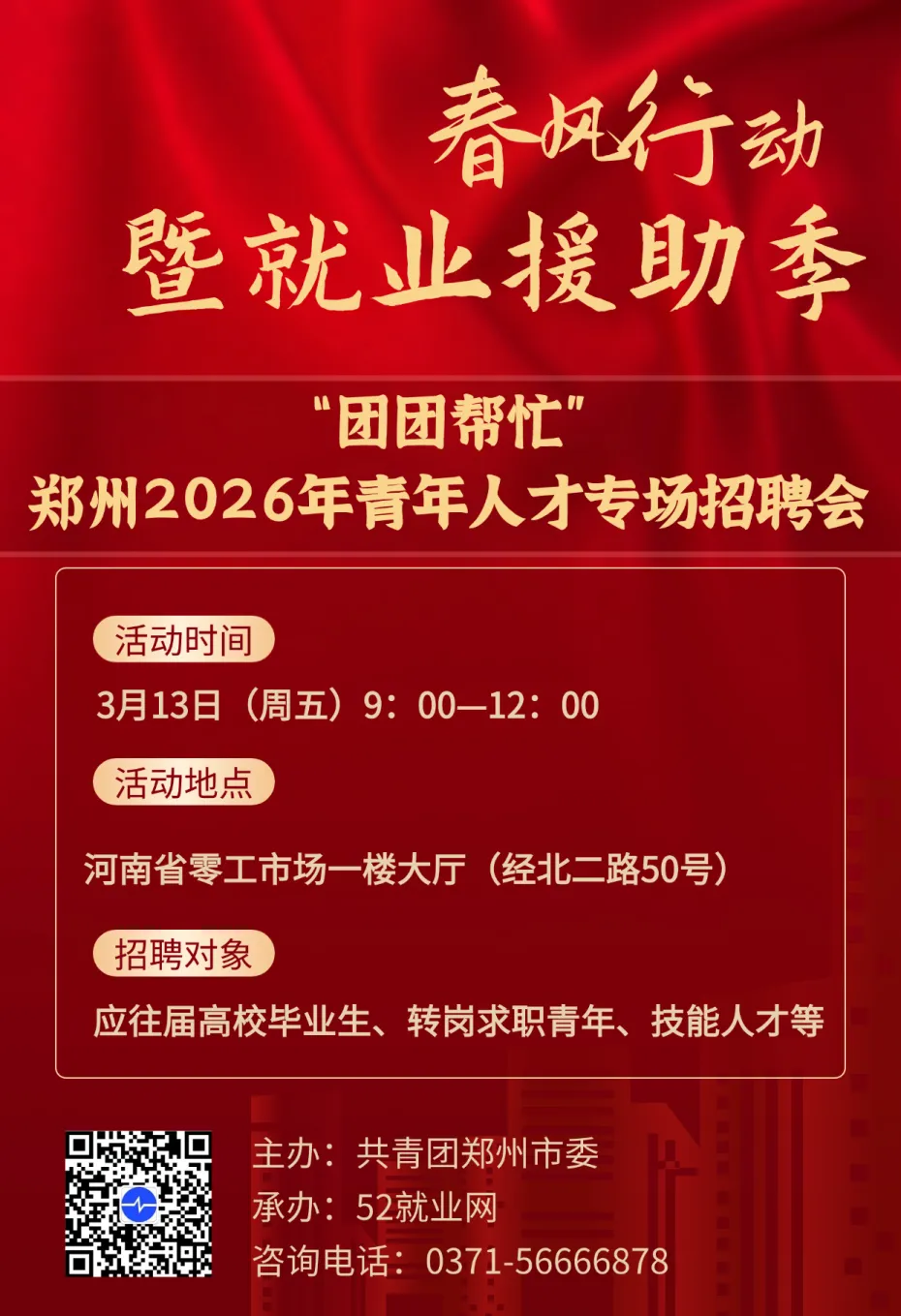 “团团帮忙”—郑州2026年“春风行动”青年人才系列招聘会第二场来啦!