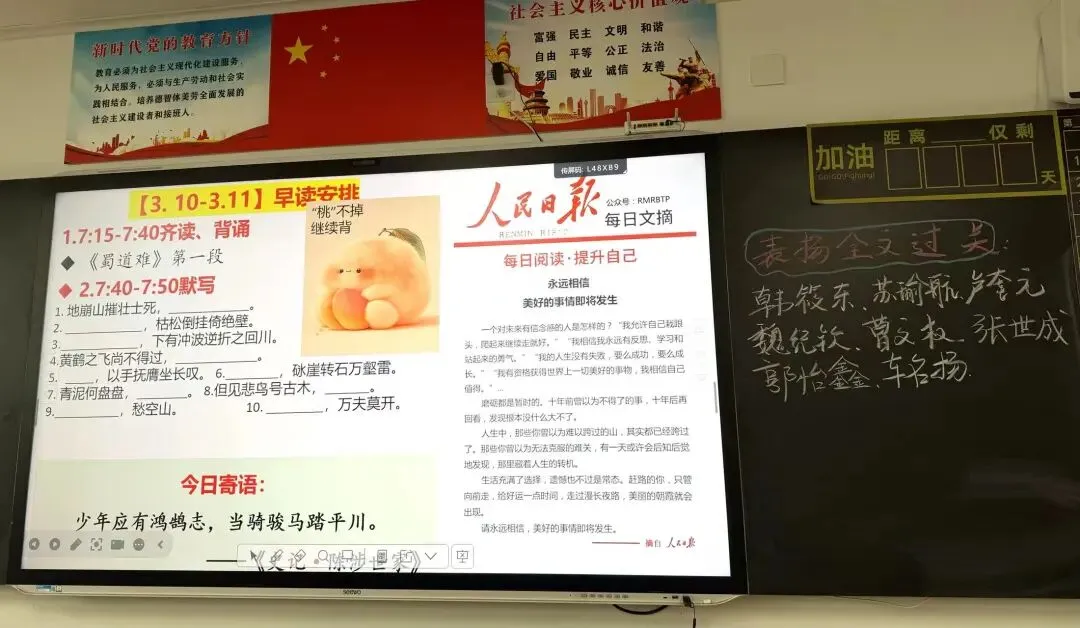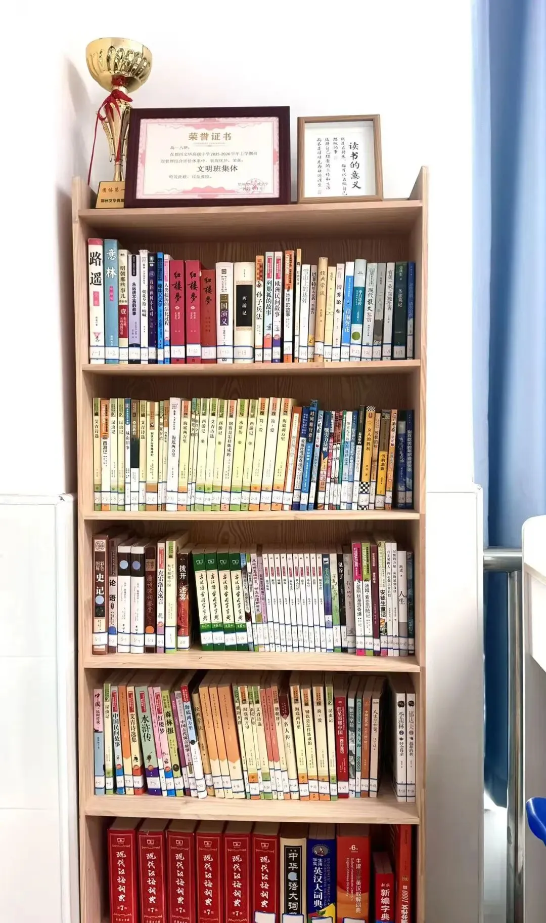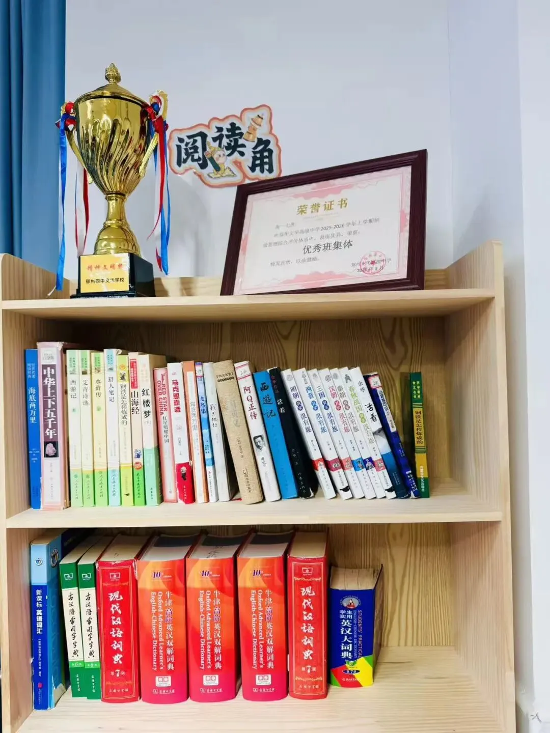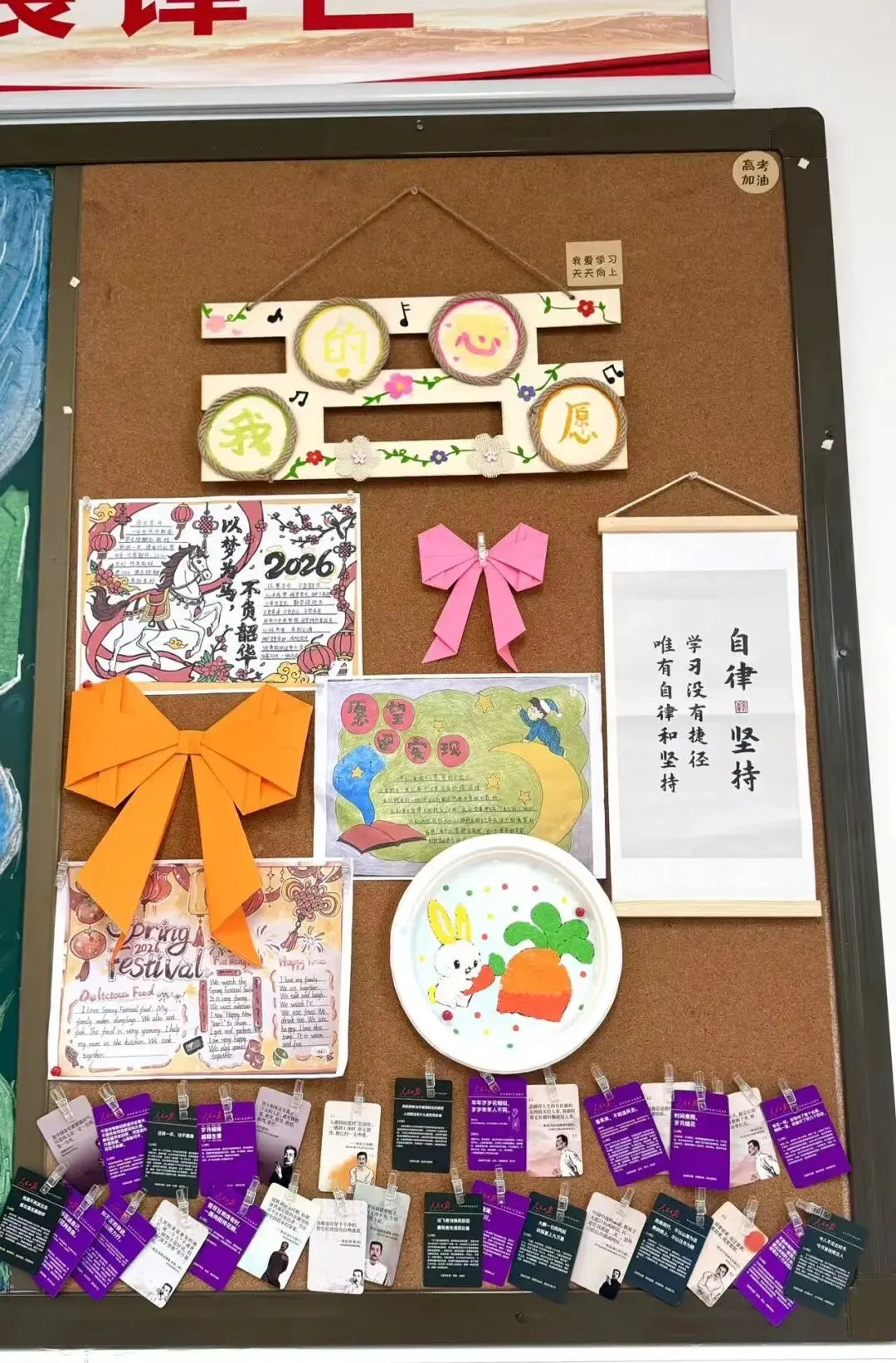 教室内张贴的学生生活照与成长目标相映成趣,让每一面墙壁都会说话,每一处空间皆有温度。整洁有序、书香满溢的教室,成为校园里最动人的风景。