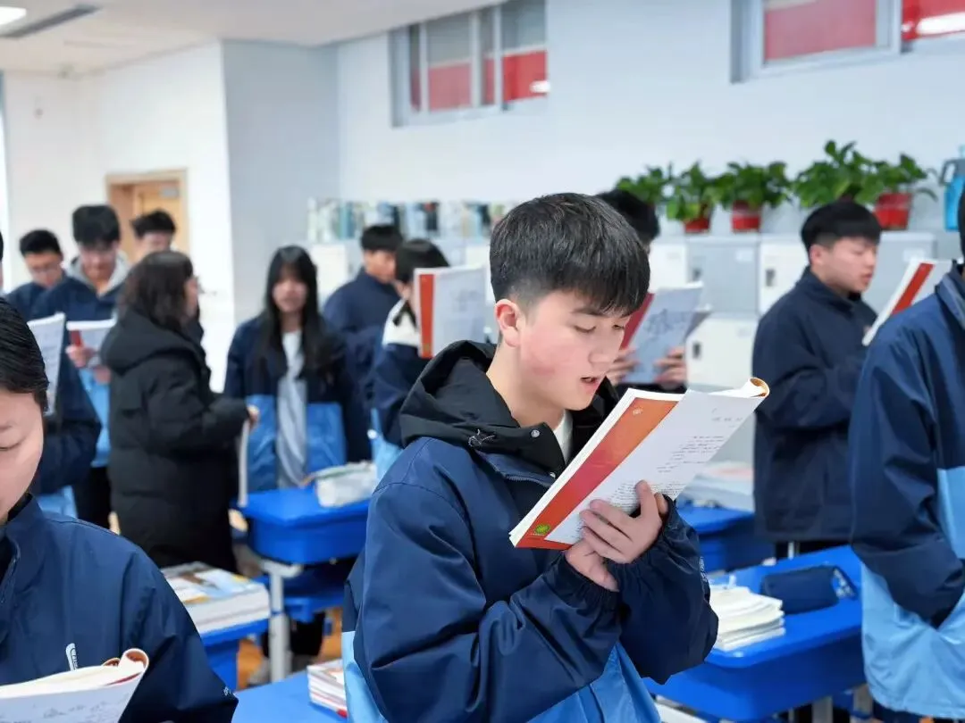 春晨破晓,激情早读准时开启。全体学生精神饱满、身姿挺拔。