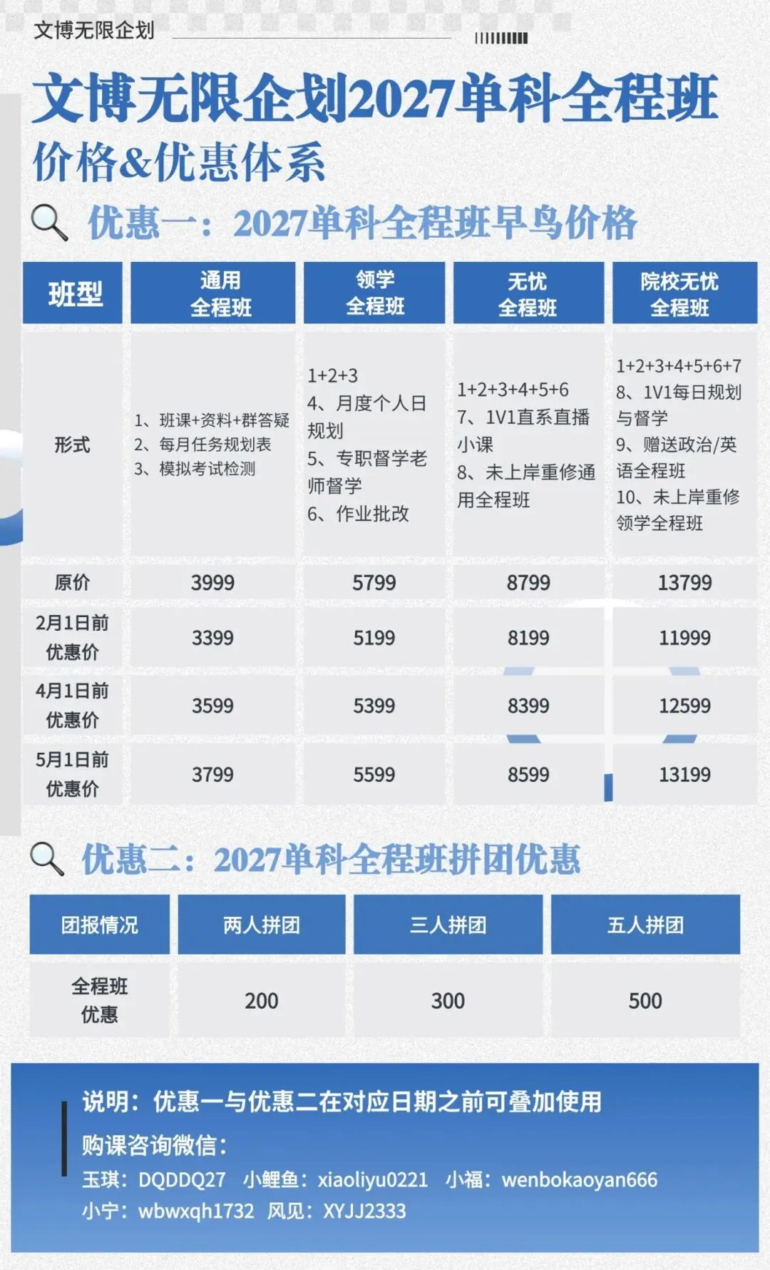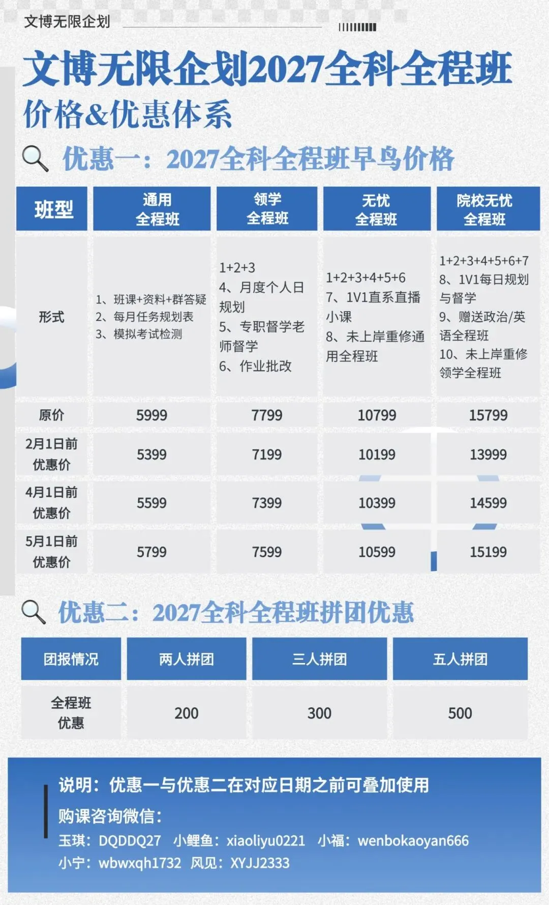以上三重优惠可叠加使用!也就是说,如果你同时满足拼团+转发,最低仅需849元;若你是老学员且参与拼团+转发,更可享受最低799元的超值价!