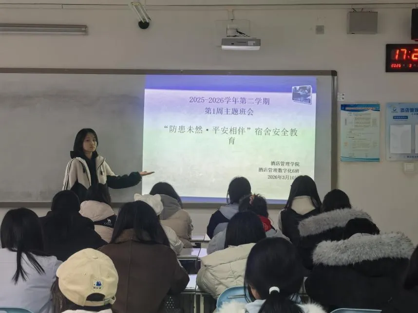 为筑牢校园安全防线,强化大学生宿舍安全意识,守护宿舍安全,酒店管理学院于本周在敏行楼组织开展“防患未然·平安相伴”宿舍安全教育主题班会。