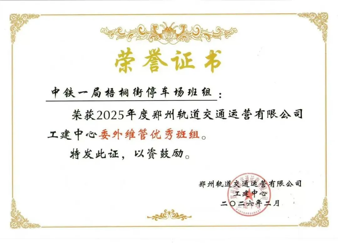 近年来,郑州地铁维管项目部持续推进人才培养与班组建设,通过技能比武、岗位练兵等活动,打造了一支素质过硬、作风优良的维管队伍,多次获得业主单位肯定。此次双优表彰,既是对2025年度工作的高度认可,更是下一步工作奋进的动力。下一步,项目部将以先进为榜样,持续提升维管服务品质,为郑州地铁安全高效运营贡献更大力量。