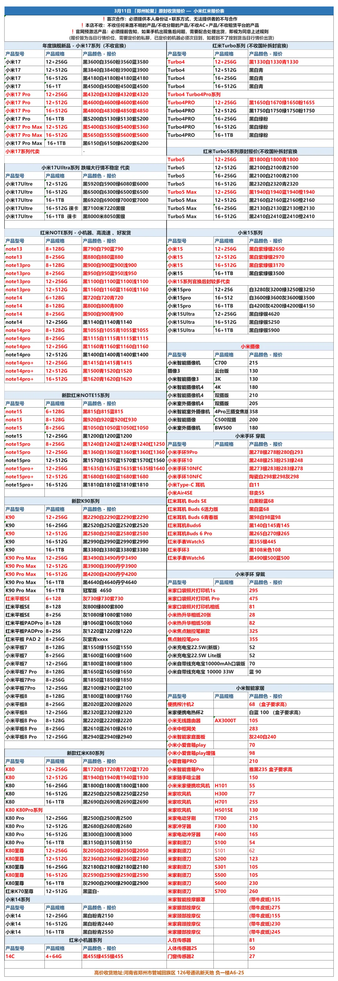 >郑州轮聚通讯 2026年3.11日数码报价更新