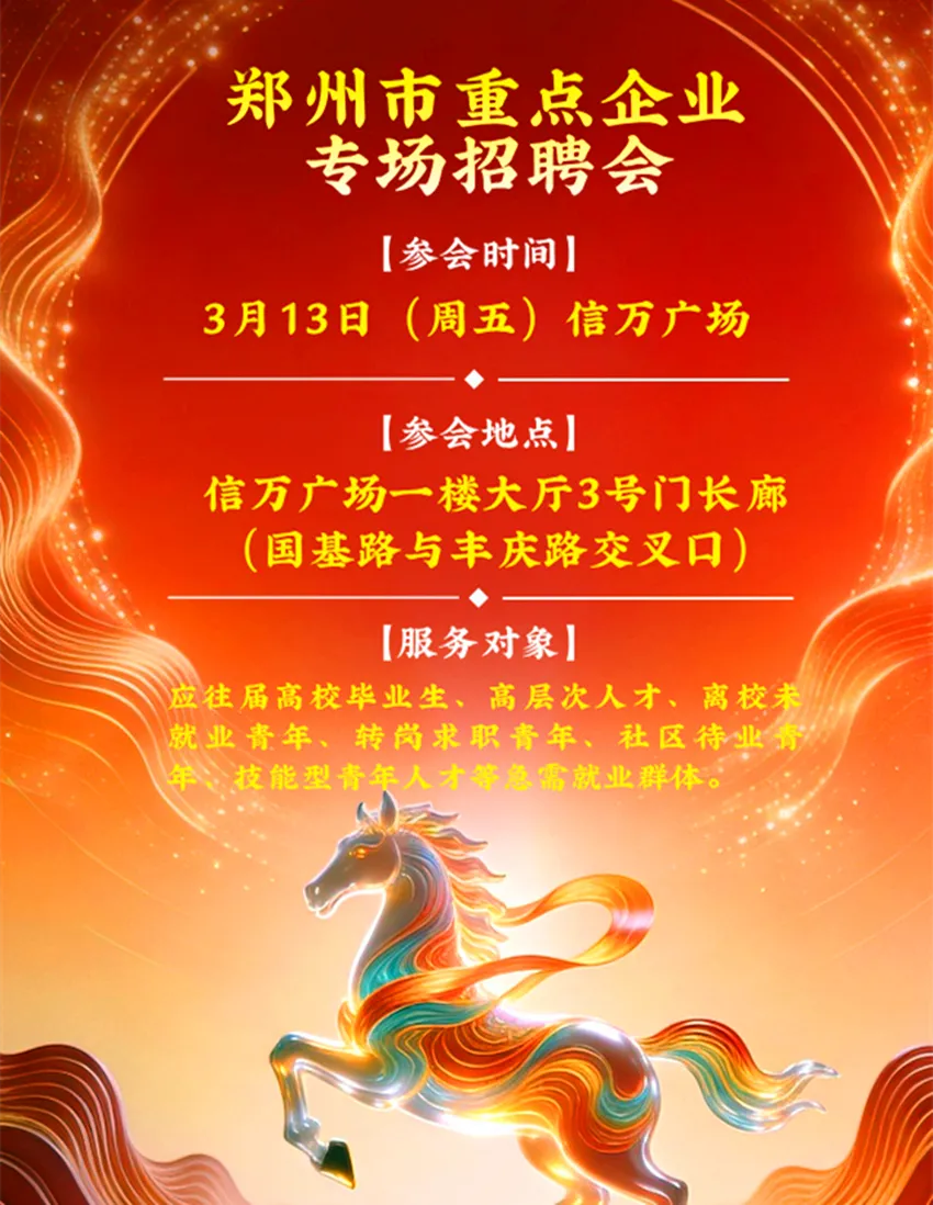 为促进青年人才等重点群体高质量充分就业,明天上午,郑州市重点企业专场招聘会将在郑州金水信万广场一楼长廊大厅举办,将为求职者提供9700多个岗位。