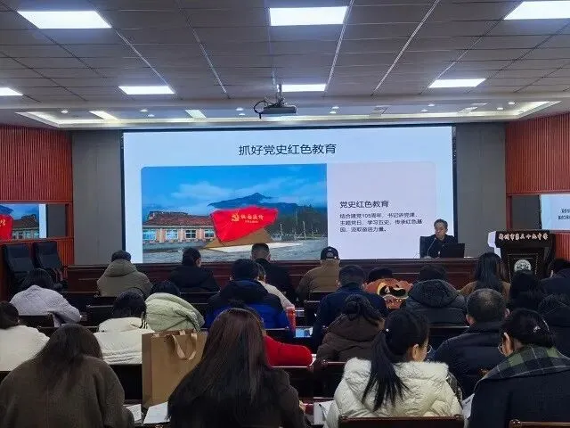 春来潮涌东风劲,扬帆奋进正当时。为深入学习贯彻党的二十大精神,全面部署新学期党建工作,进一步提升党总支的凝聚力和战斗力,2026年春季开学伊始,郑州市第三十九中学在慎思楼四楼报告厅召开新学期全体党员大会。党总支书记刘旭东参加会议并讲话,同时为全体党员讲授了一堂题为“树立和践行正确政绩观——新时代党员干部的必修课”的专题党课,全体党员参加会议。