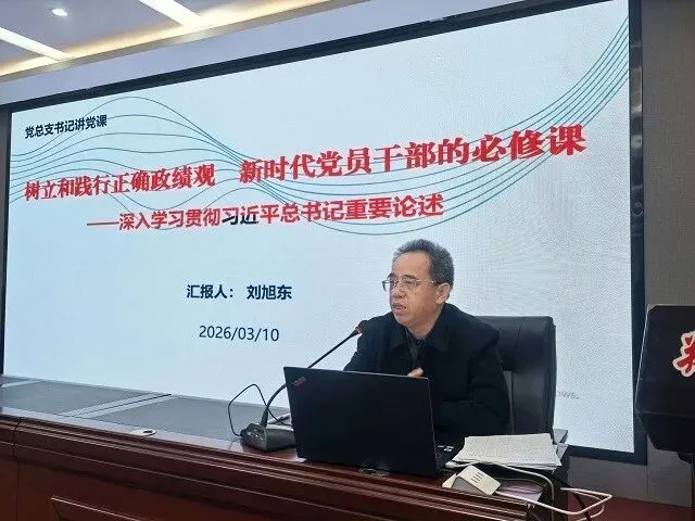 刘旭东带领全体党员深入学习贯彻习近平总书记关于树立和践行正确政绩观的重要论述。他从政绩观的时代意义切入,指出政绩观是面镜子,映照着党员干部的党性修养、宗旨意识和格局境界。