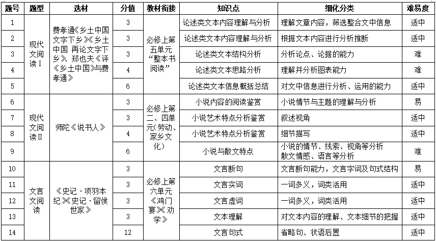 现代文阅读Ⅰ选取《乡土中国文字下乡》部分,是费孝通先生剖析中国传统乡土社会特质的核心篇章。材料从空间与时间两个维度阐释“面对面社群”与“定型社会”中文字功能的有限性,引导学生破除对乡村“愚昧落后”的刻板印象,理解乡土社会自有其高效的文化传承逻辑。这不仅是对学术经典的深度学习,更是在现代化进程中重新审视传统价值的文化自觉教育。