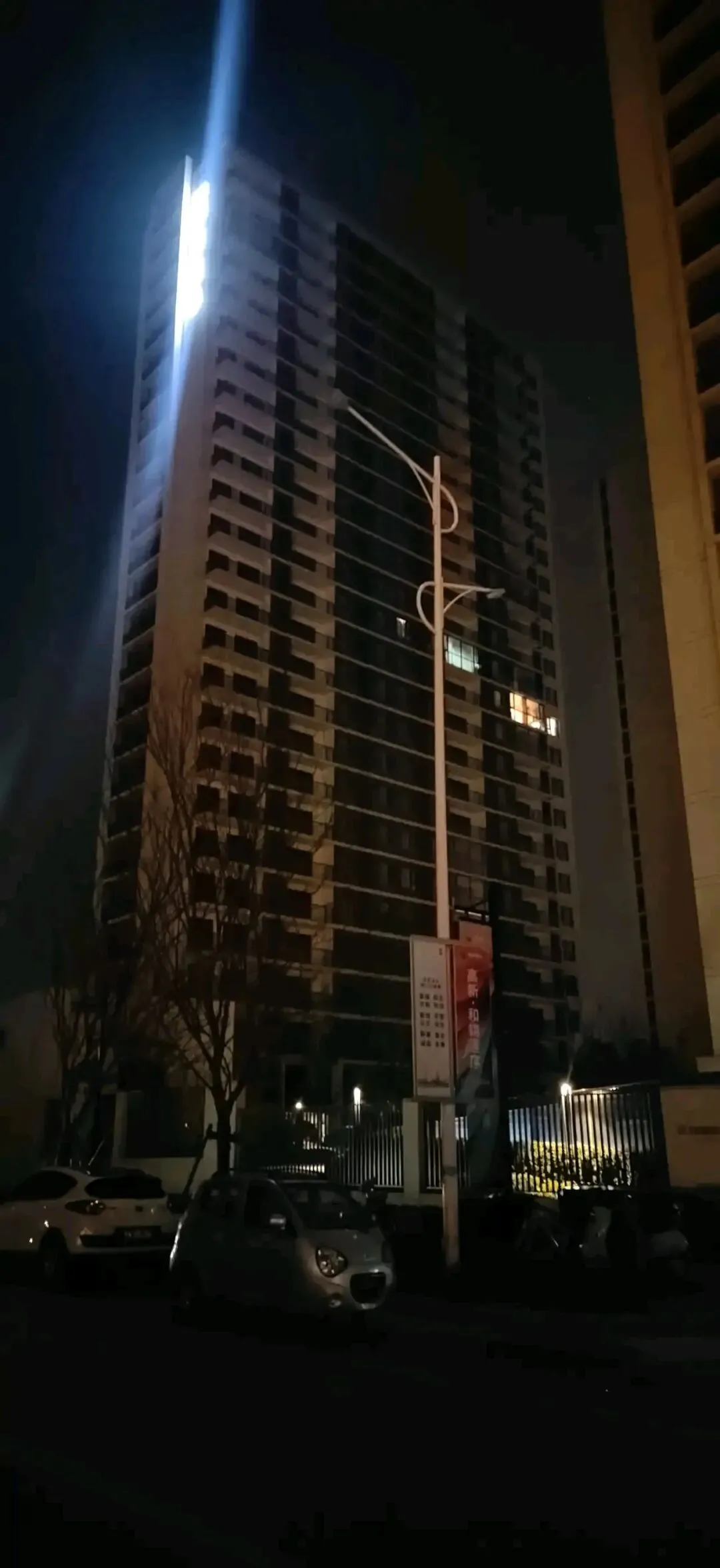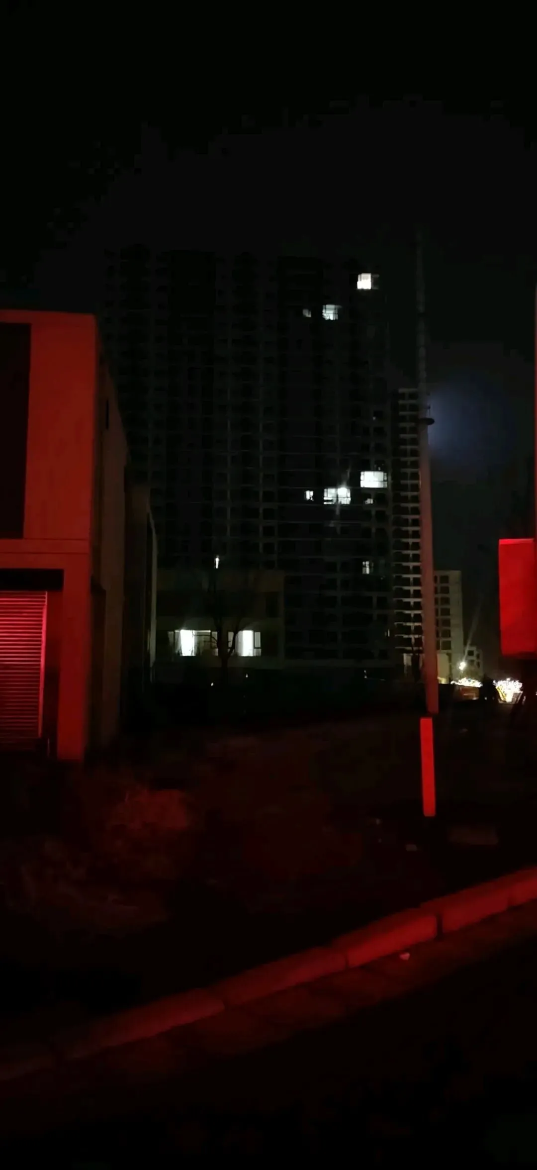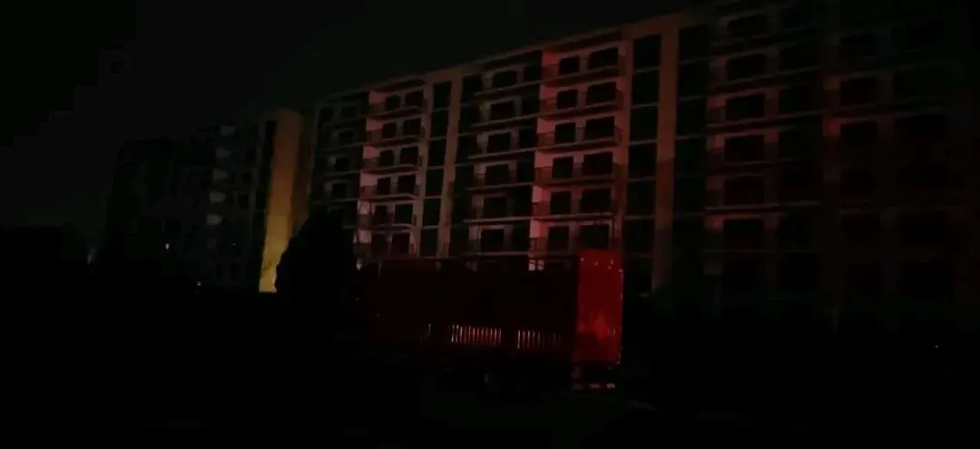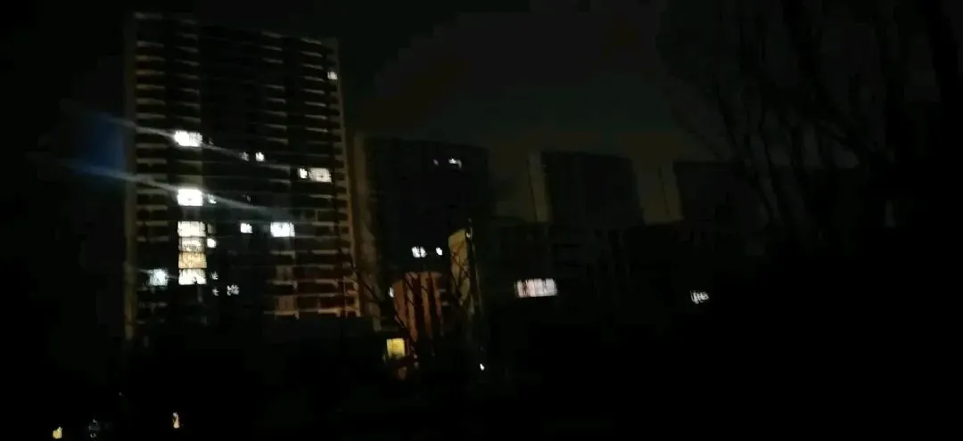 照片拍摄于晚上九点半左右,这个时间应该都下班了,还没有到睡觉的时间。有两栋高层有几户亮灯,其他的高层楼和多层楼几乎没有亮灯的。