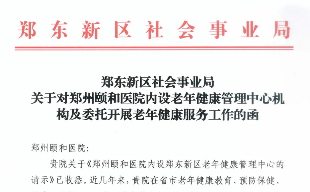 郑州颐和医院获批设立“郑东新区老年健康管理中心”!