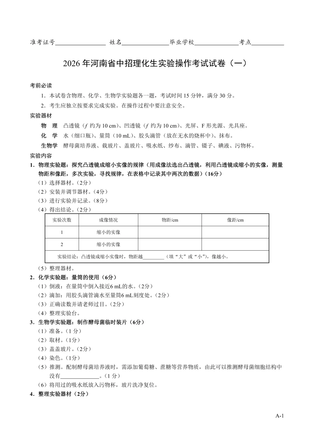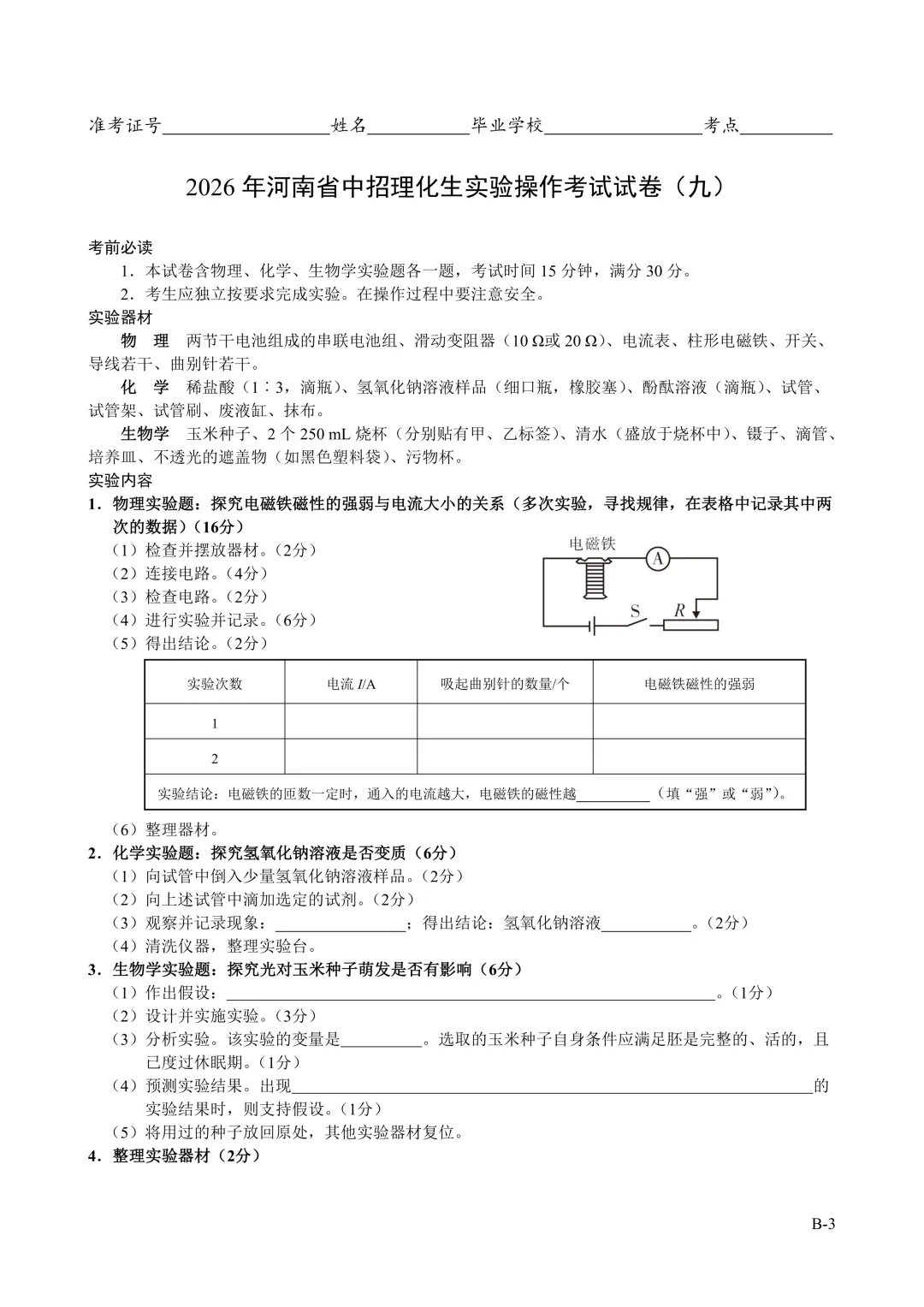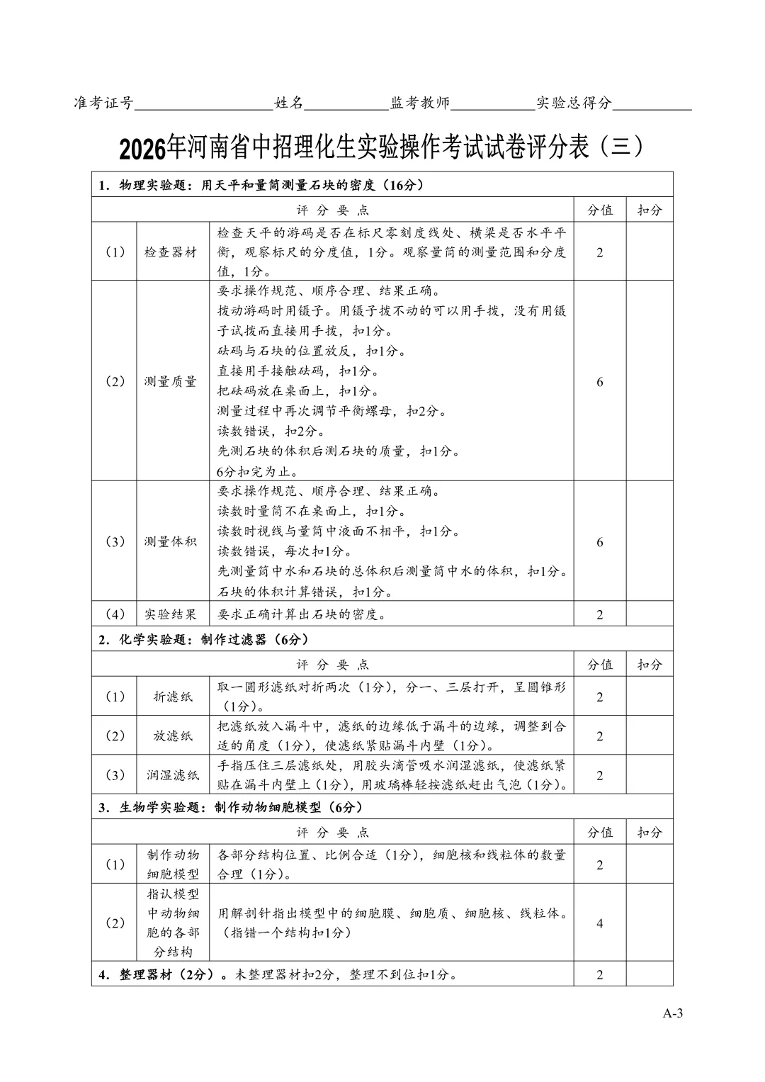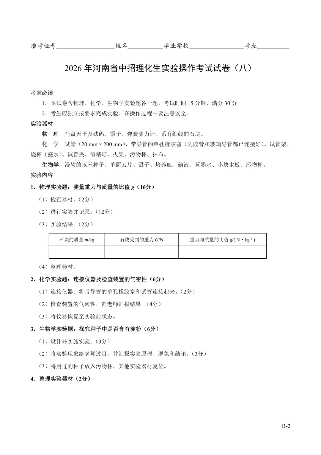 有消息称,2026年郑州市中招理化生实验操作考试定于4月8日-14日,考试时间共计7天。