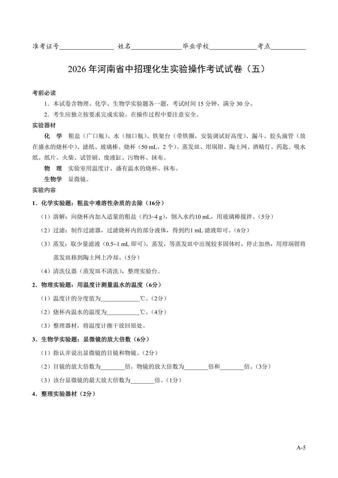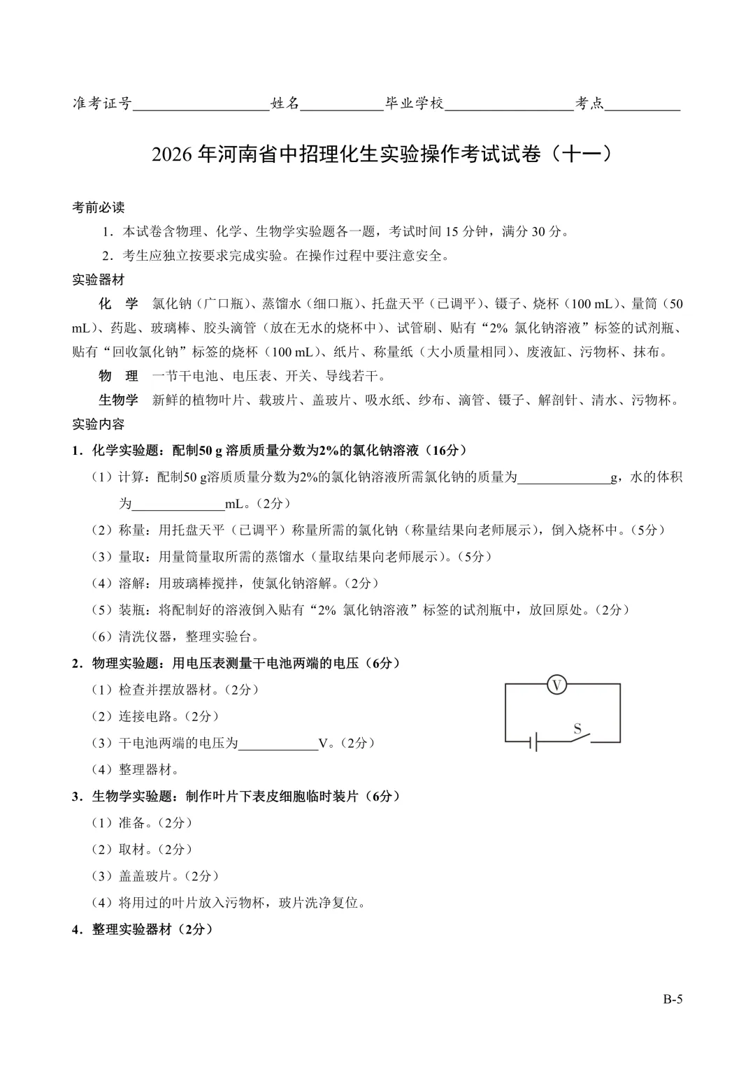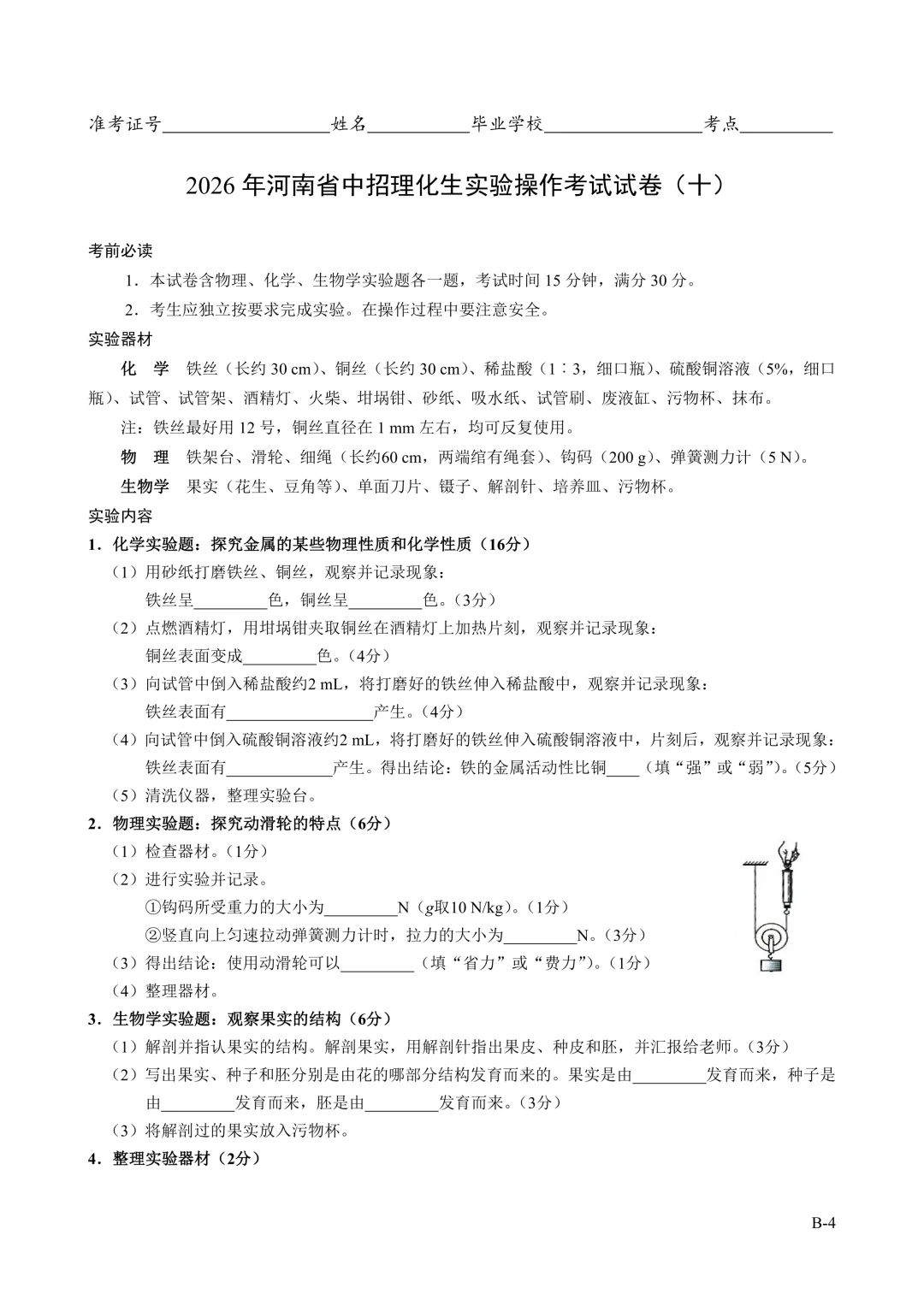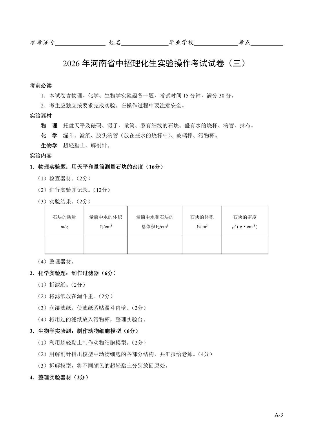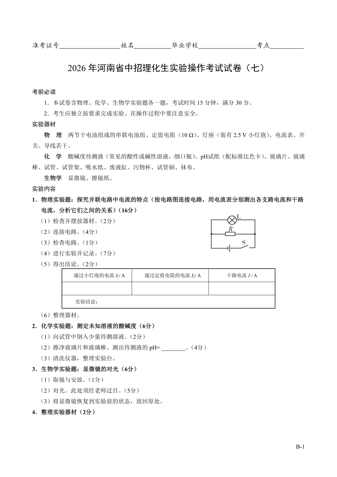 有消息称,2026年郑州市中招理化生实验操作考试定于4月8日-14日,考试时间共计7天。
