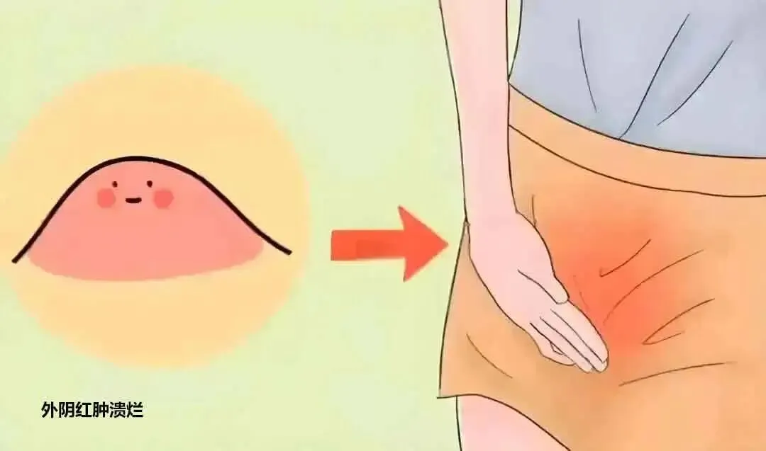 ✔软下疳:特征: 多发性、疼痛剧烈的溃疡,基底软,伴有脓性分泌物。✔急性外阴炎/阴道炎:特征: 严重的外阴炎症(如念珠菌感染或滴虫感染)导致外阴皮肤高度红肿、破溃,分泌物较多。3. 外伤或物理/化学刺激机械性摩擦: 粗暴的性生活、衣物过度摩擦导致皮肤破损继发感染。化学灼伤: 对卫生巾、避孕套、清洗液、润滑剂等过敏,或使用了刺激性强的药物,导致皮肤红肿、糜烂。固定性药疹: 服用某些药物(如磺胺类、解热镇痛药)后,在外阴等特定部位出现红斑、水疱和糜烂。4. 其他皮肤或全身性疾病🔴白塞病: 一种全身性免疫系统疾病,特征之一就是反复发作的、疼痛剧烈的口腔及外阴溃疡。🔴外阴克罗恩病: 炎症性肠病累及外阴,可形成溃疡。🔴外阴癌(比较罕见但需警惕):