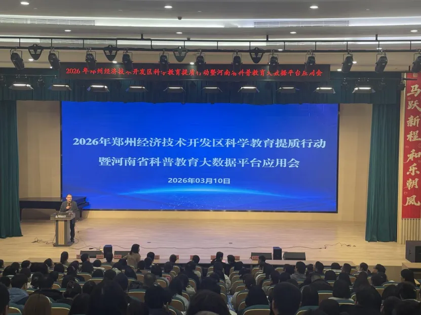 为深入贯彻落实新时代科学教育工作要求,推动科普教育数字化、智能化转型,切实提升区域科学教育质量,助力教育强省、创新型河南建设,3月10日下午14:30,2026年郑州经济技术开发区科学教育提质行动暨河南省科普教育大数据平台应用会在朝凤路小学隆重召开。全区30余所小学校长、科学教师、信息科技教师,共200余人参加了会议。