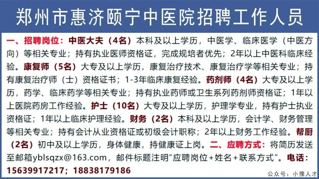 >郑州市惠济颐宁中医院招聘工作人员