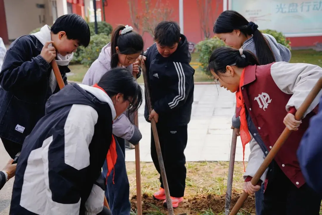 铁锹起落间,不仅是泥土的翻飞,更是对岁月的深情回望。挖坑,是为梦想深扎根系;扶正,是守住初心的挺拔;填土,是用六年的点滴回忆为未来筑巢;浇水,则是以感恩之泉滋养生命的脉络。
