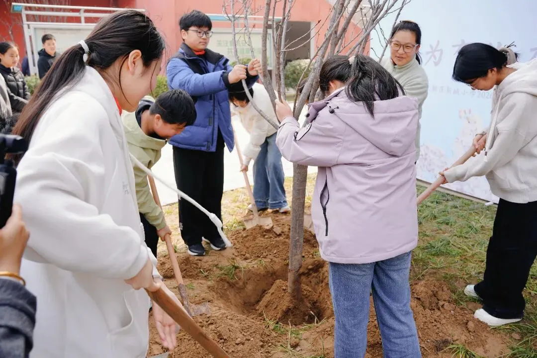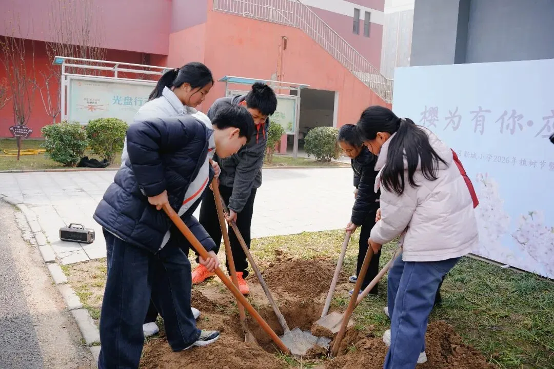阳春三月,草长莺飞,正是植树播绿的好时节。2026年3月12日,正值第48个植树节,郑州市郑东新区新城小学将环保教育、感恩教育与毕业课程深度融合,隆重举行了以“樱为有你·应植芳华”为主题的植树节活动,同学们一起种下了一棵承载着希望与回忆的“毕业樱”。