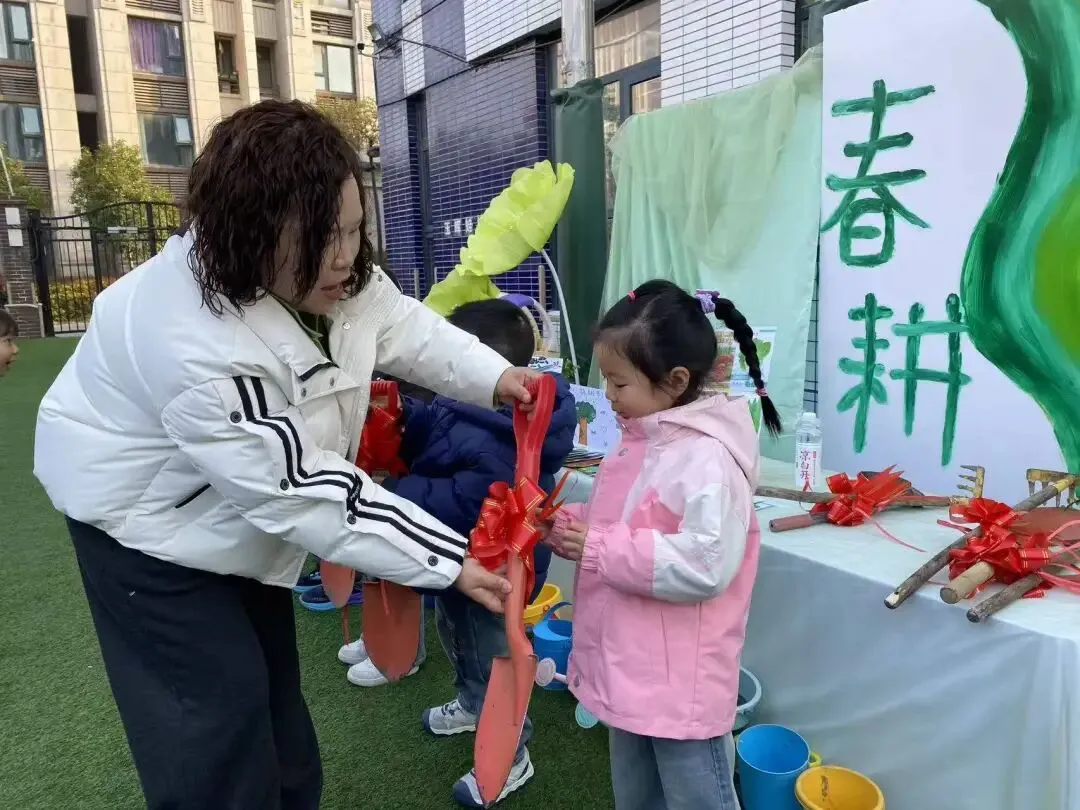 振奋人心的开耕口号响彻校园,孩子们精神抖擞、满怀热忱,以最饱满的姿态迎接开耕时刻。各班选派一名代表,有序领取锄头与种子,小小的工具承载着劳动的责任,饱满的种子孕育着希望的未来。