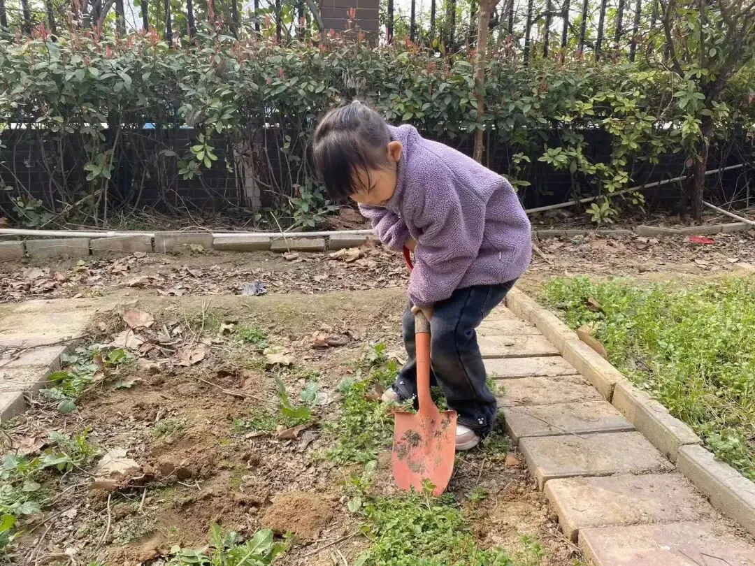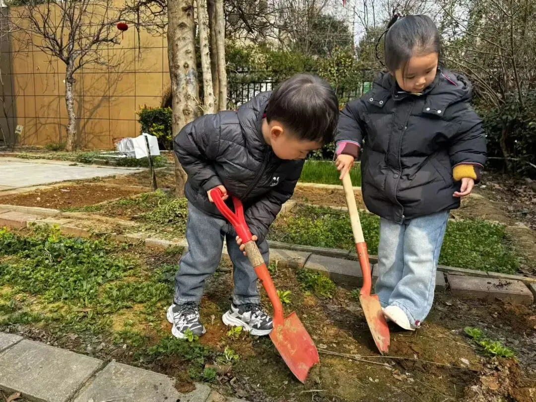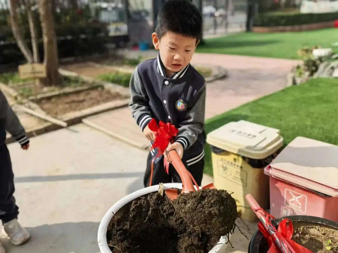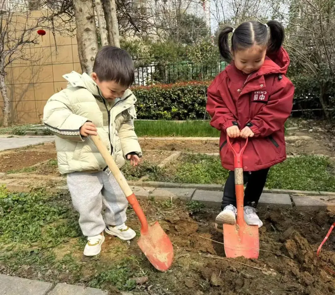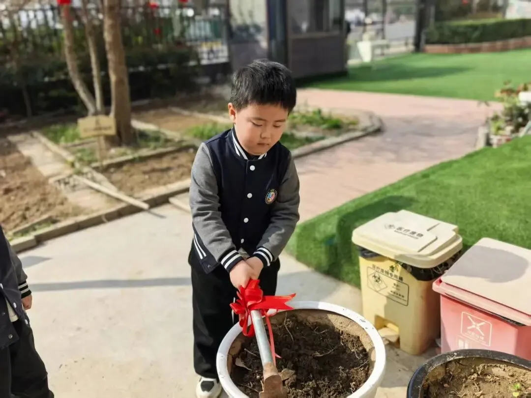 宝贝们用小小的手,在种植区里轻轻播下希望的种子。松土、挖坑、放种、覆土、浇水,每一步都认真又专注。
