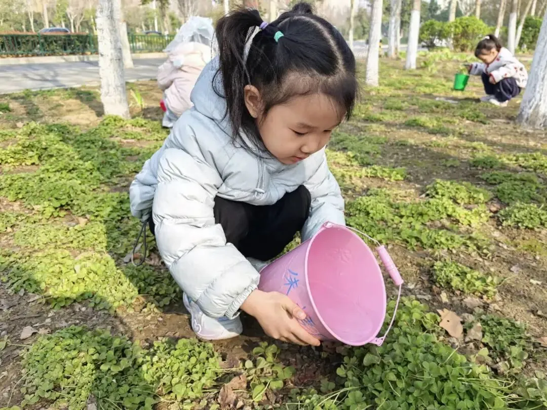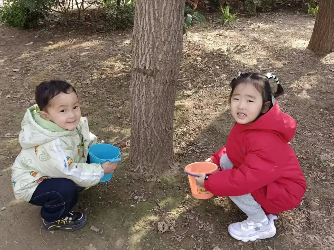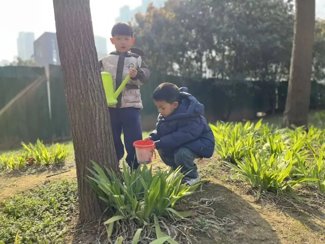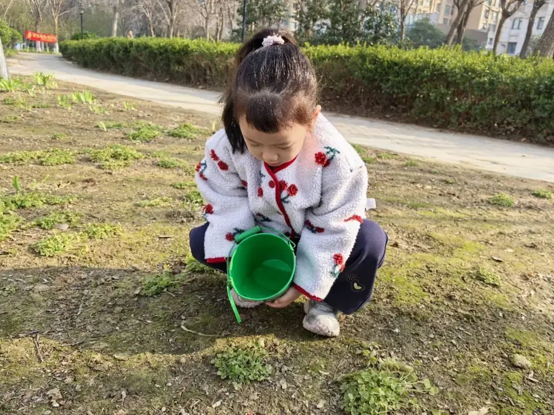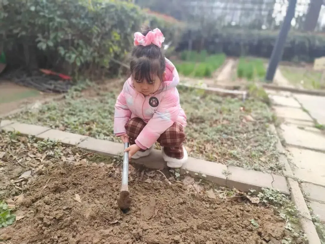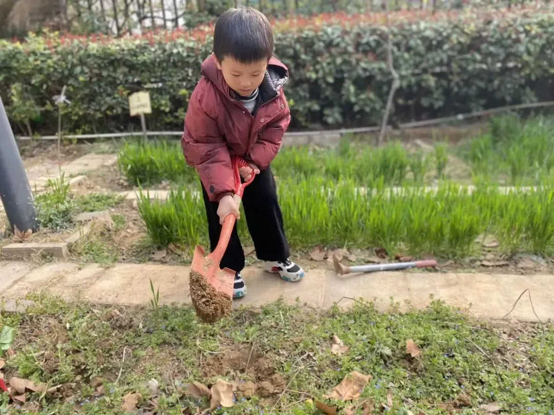 宝贝们用小小的手,在种植区里轻轻播下希望的种子。松土、挖坑、放种、覆土、浇水,每一步都认真又专注。