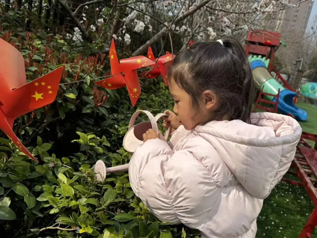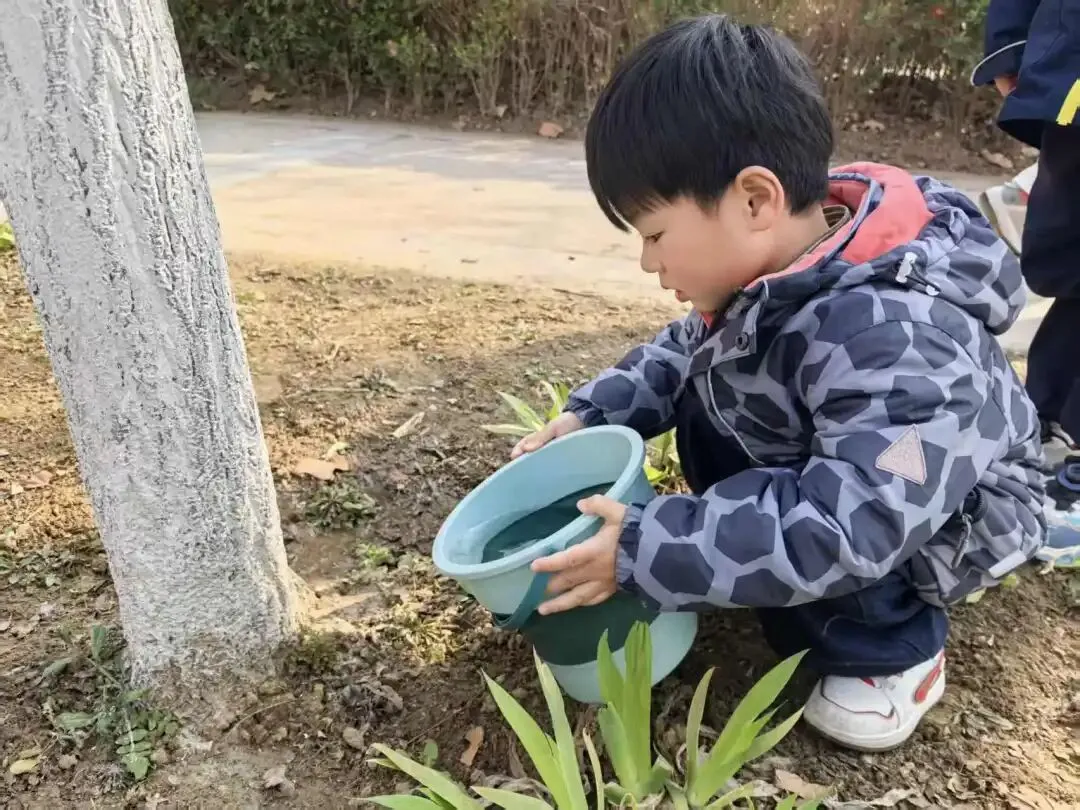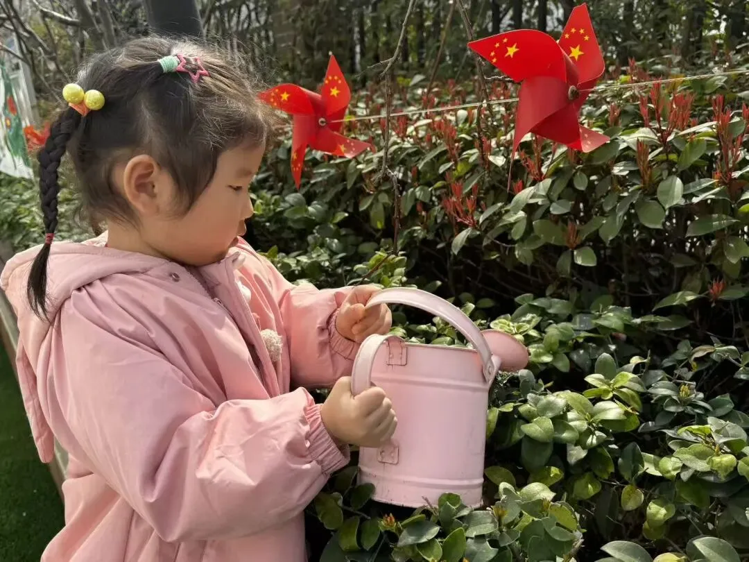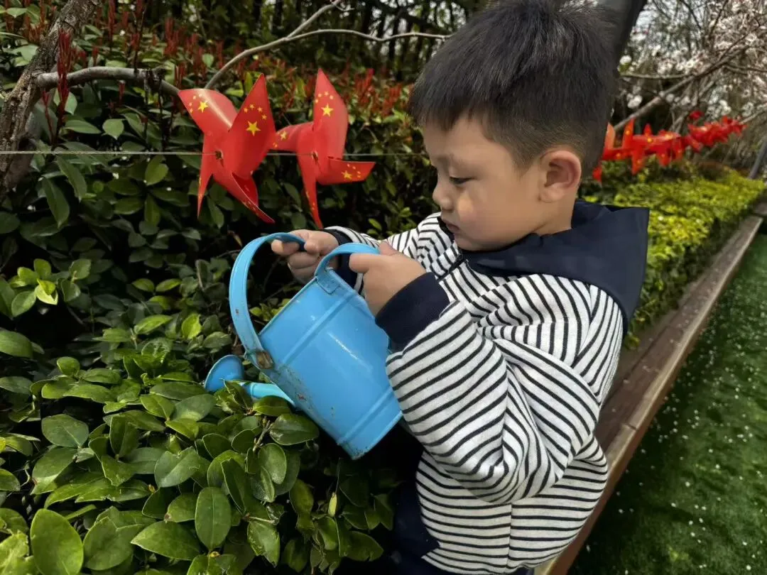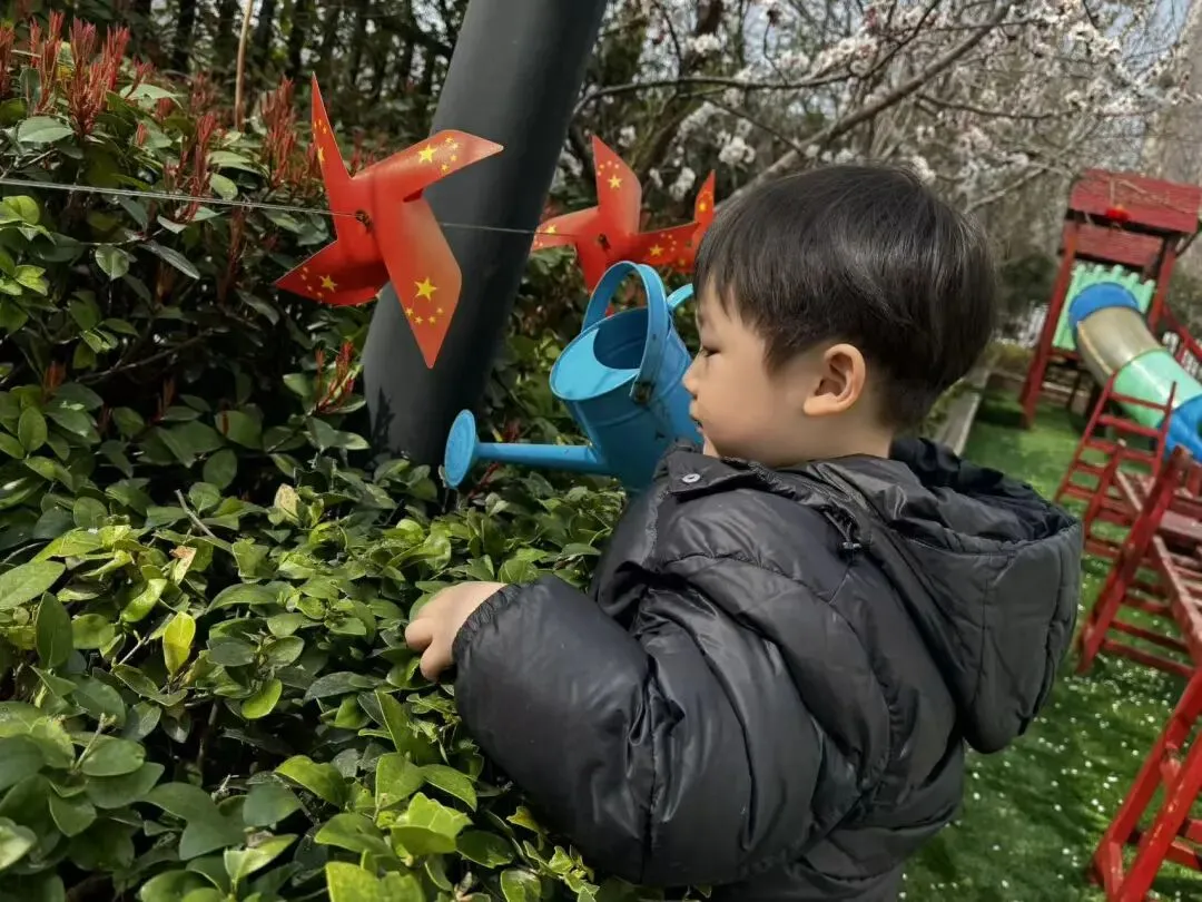 小班的宝贝们化身“小小护绿员”,漫步在熟悉的园区里,用稚嫩的双手为园内的花草树木浇水。他们小心翼翼地捧着小水壶,认真观察每一片新叶、每一根枝条,用最纯真的行动呵护身边的绿色。简单的浇水动作,让孩子们懂得了植物生长需要呵护,在心底种下了爱护自然的小种子。
