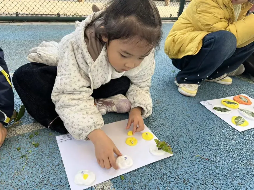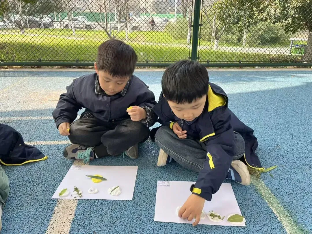大班的孩子们化身春日收藏家,在老师的带领下捡拾掉落的花瓣、形态各异的落叶、鲜嫩的小草,将春日里最动人的自然碎片一一收集。孩子们认真清理、摆放、固定,每一片叶子、每一朵小花都变成了独一无二的艺术标本,让短暂的春光,变成了可以长久珍藏的美好回忆。
