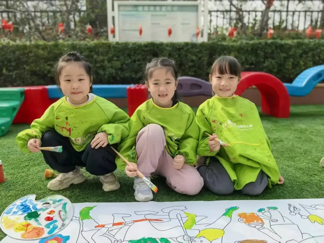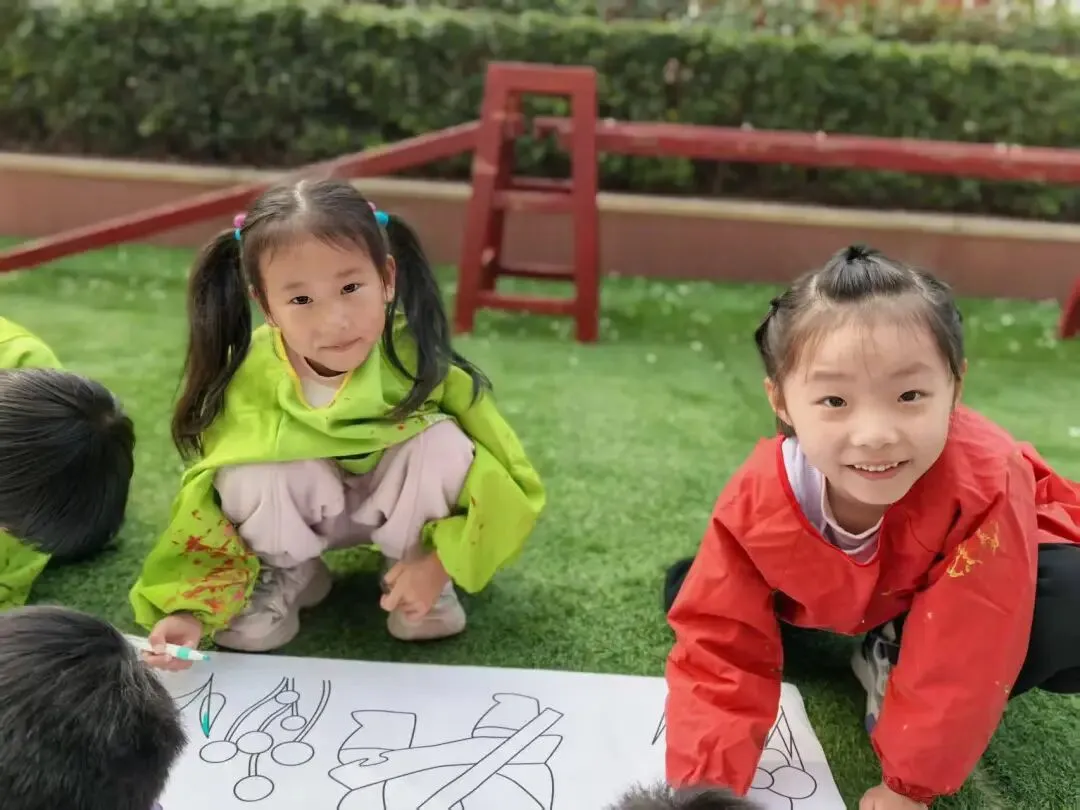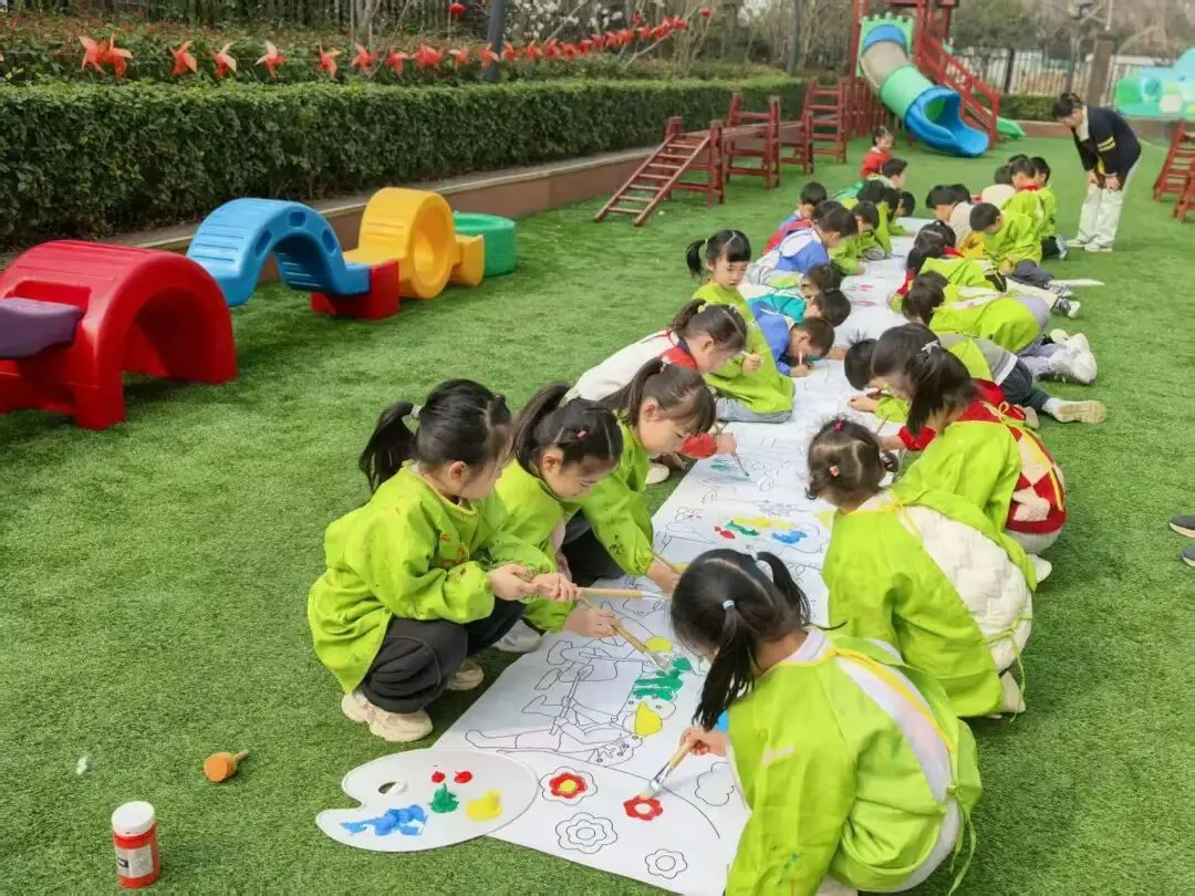 孩子们将不同颜色的颜料铺在画纸上,一幅幅清新自然、充满童趣的春日画作跃然纸上。孩子们用最特别的方式,画出心中的春天。