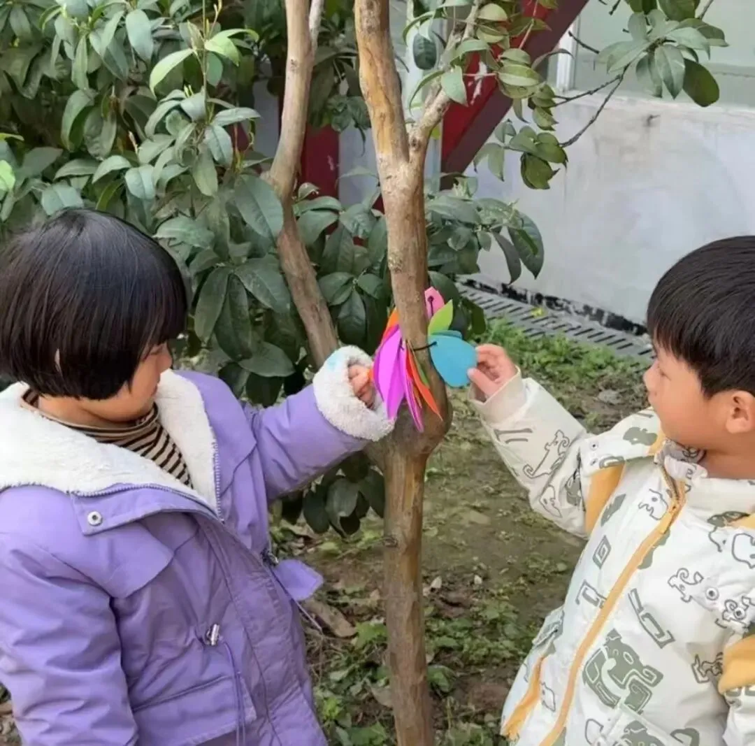 中班的孩子们化身“护绿小萌娃”,在老师的温柔引导下,给小树制作了独一无二的叶子衣服,美丽的色彩,好看的线条,系在一起,送给小树,每一个动作都认真又稚嫩。。