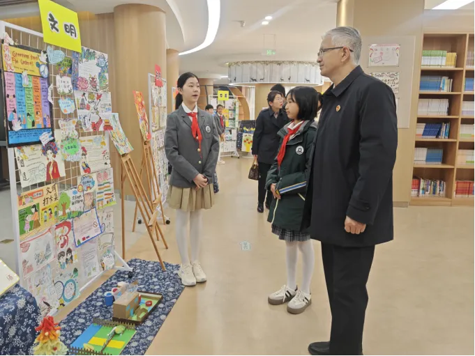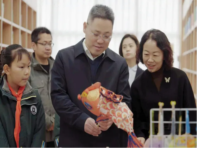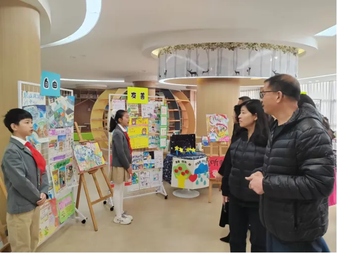 仪式前期,与会领导和嘉宾先后走进校史馆、茗书苑等场所,从建校之初到如今优质资源共建共享的集团化办学发展历程,从进阶式大任务迭代升级的育人框架,到学生在不同主题下跨学科实践成果的创意展示。大家驻足观赏,沉浸式感受出彩教育的内涵与成效。仪式在气势恢宏的中华响扇与务实的大任务进阶德育课程展示中拉开帷幕,师生们以昂扬风貌与多元素能,展现丰硕育人成果,赢得全场热烈掌声。郑州高新区教育文化体育部部长赵庚阳在致辞中指出,“出彩教联体”的成立是区域教育深化家校社协同育人的创新实践,希望教联体能充分整合各方资源,为学生全面发展搭建更广阔的平台,助力区域教育高质量发展。河南省教育学会家校社共育专委会副主任贾天仓分享宝贵见解,他肯定了学校在出彩教育领域的探索成果,鼓励教联体持续深化合作,打造可复制、可推广的高品质协同育人样板。外国语小学校长刘娜向与会嘉宾介绍学校多年来在家校社协同育人方面的实践探索,通过家校“五位一体”、校社“三联合力”,构建项目自主管理体系。牛晶晶副校长宣读章程,明确组织架构、运行机制与发展目标,呼吁各方携手践行章程,让每一名儿童在教联体沃土上茁壮成长、绽放光彩。揭牌聚合力 携手共赋能