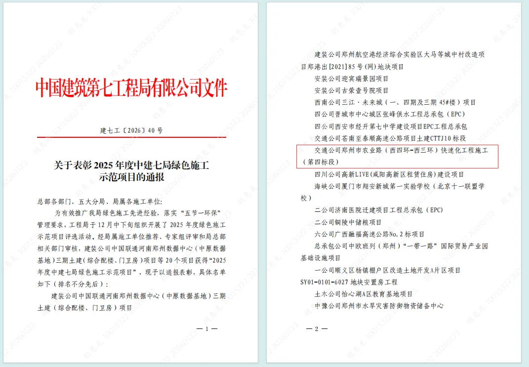 “2025 年度中建七局绿色施工示范项目”