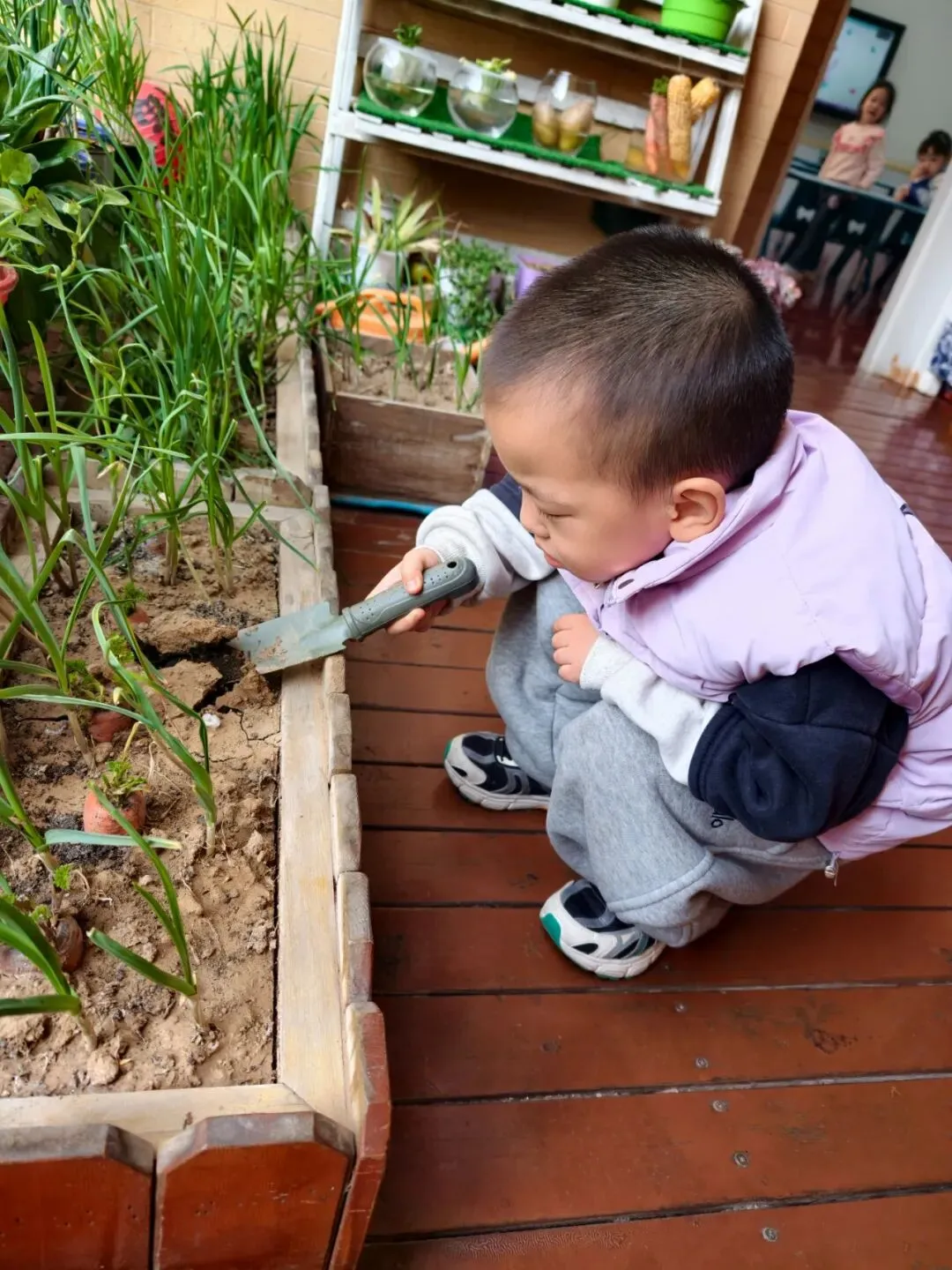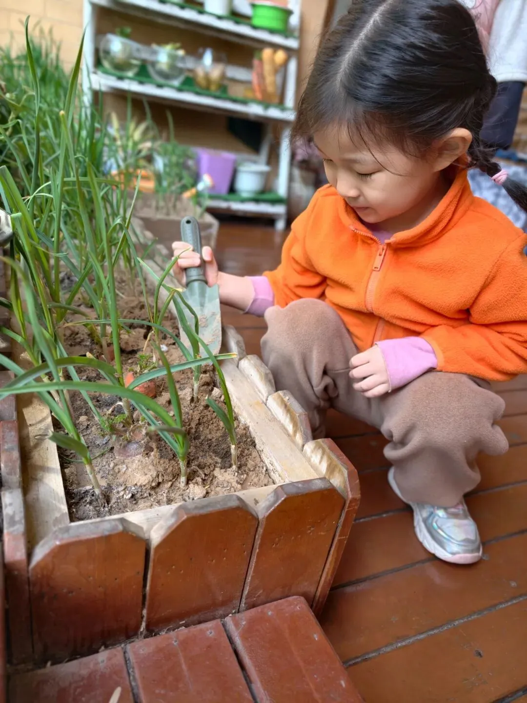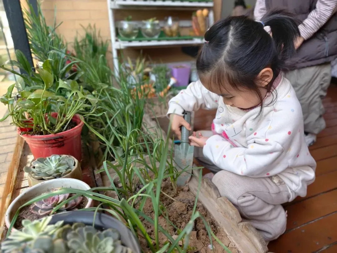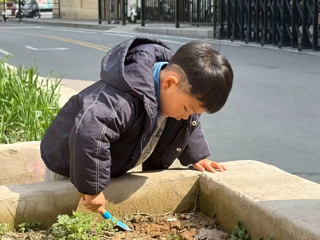 在幼儿园的种植区域,孩子们化身“小小园艺家”,分工合作、忙得不亦乐乎。稚嫩的小手紧握小铲子,小心翼翼地翻松土壤,将泥土轻轻拨到花盆或种植坑中;有的孩子捧着小水瓶,蹲在小植物旁,一点点浇灌清水,水珠落在泥土里,发出沙沙的轻响,仿佛是大地与孩子们的对话;每一个动作都认真又专注,小小的身影在绿意盎然的环境中,勾勒出最动人的劳动画面。