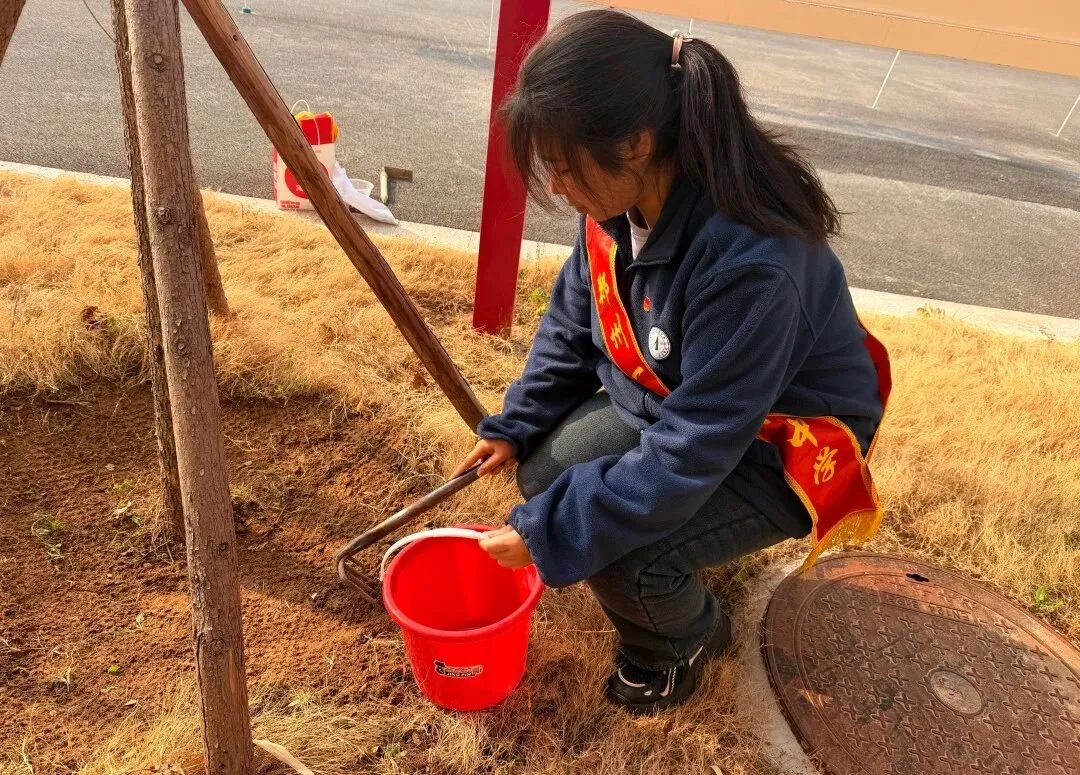 活动现场,同学们手持工具、分工协作,热情高涨、秩序井然。大家俯身弯腰,细心为校园树木锄草、松土,清理根系周边杂草与杂物,让土壤更透气、生长更舒展;随后在树周均匀播种花种,将希望与美好埋进沃土,期待繁花与绿树相映成趣。老师们全程悉心指导,讲解绿植养护知识,强调爱护草木、保护环境的重要意义,让劳动教育与生态理念相融相长。