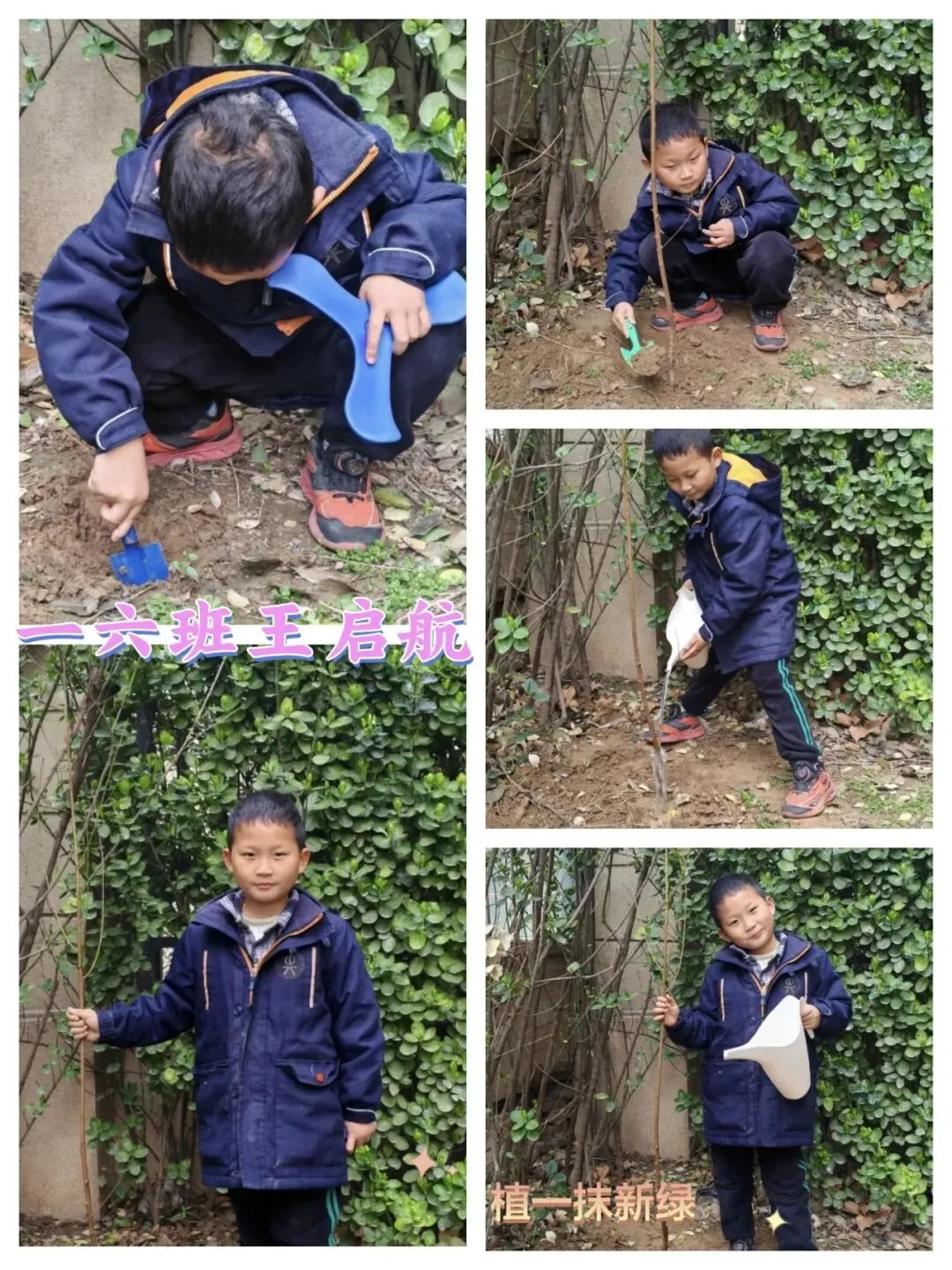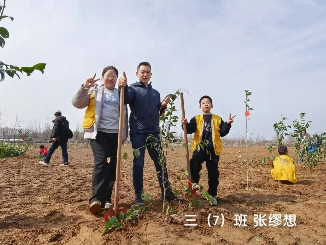 “亲子共植”让绿色理念从校园传递到家庭。周末时光,孩子们在家长的陪伴下走进自然,挥锹挖坑、扶苗填土、提水浇灌,每一个步骤都认真专注、有模有样。一锹土,种下的是希望;一桶水,浇灌的是未来。家长们用横版照片定格“我和小树的合影”,分享到班级群中,一张张笑脸与嫩绿的小树共同构成这个春天最温暖的画面。
