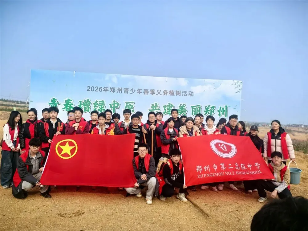以行践劳,共树担当。作为首批河南省中小学劳动教育特色学校、郑州市劳动教育教学实践典型学校,郑州市第二高级中学秉持“崇智求真 行稳致远”办学理念,着力构建“行”文化育人体系。学校将义务植树作为劳育课程的重要组成部分,连续多年常态化开展,让劳动实践与生态教育、责任教育深度融合,引导学生在动手实践中体悟劳动价值,在行动中书写担当,以青春之力助力美好社会建设。