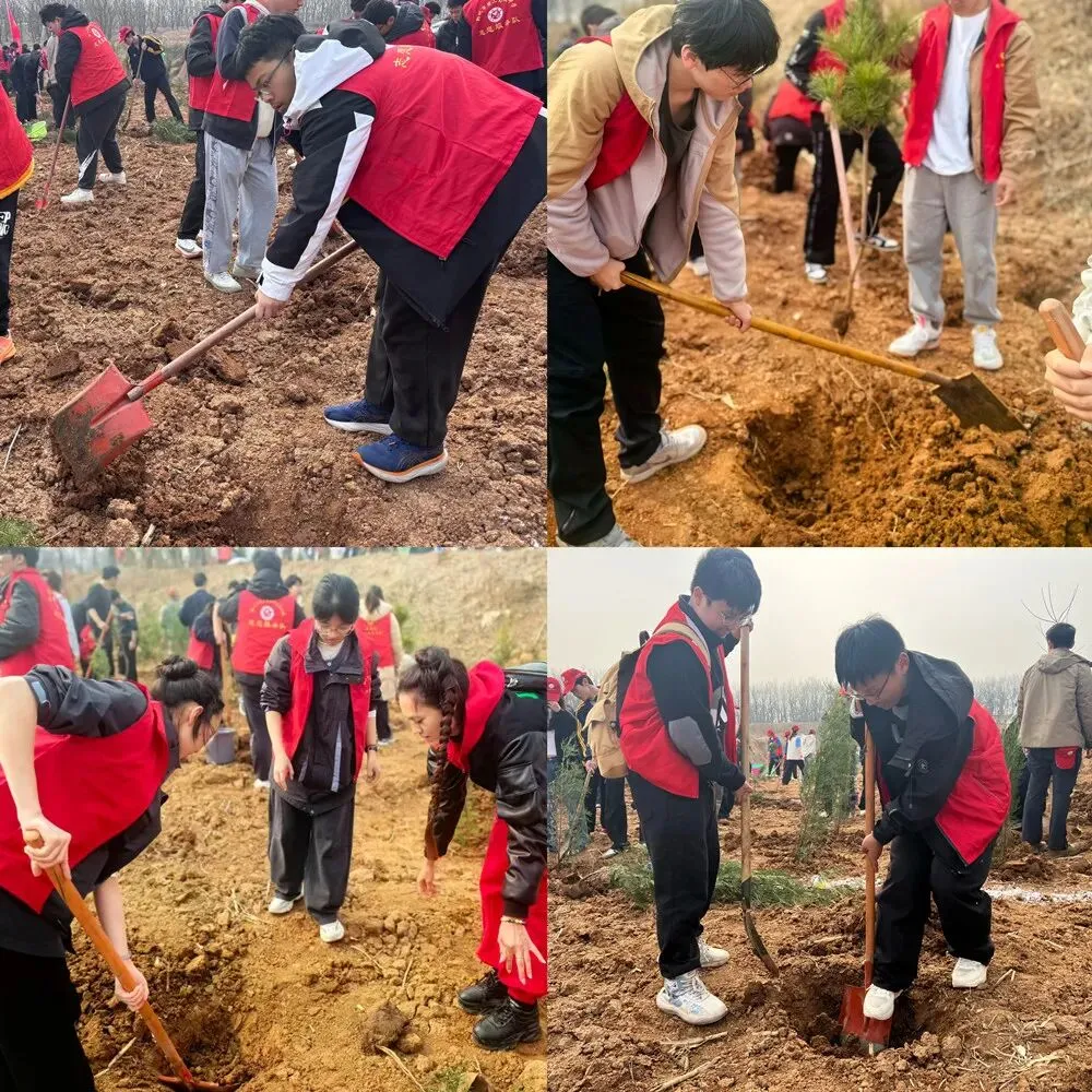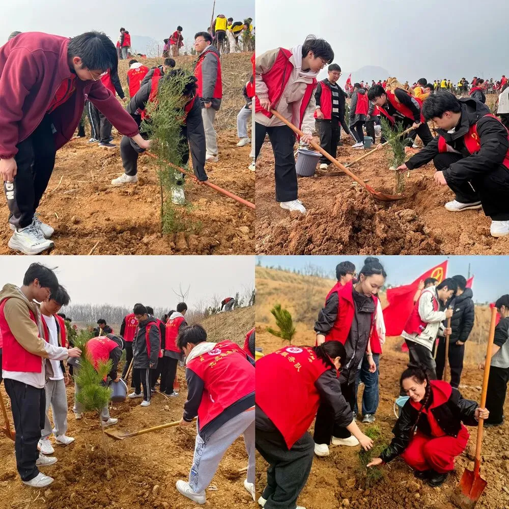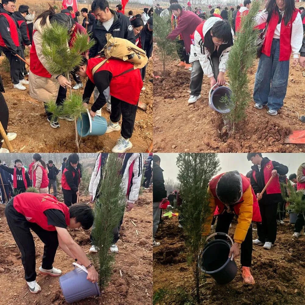 植树现场,师生们分工协作、干劲十足,挥锹铲土、扶苗填坑、踏土夯实、提水浇灌,每一道工序都认真细致、有条不紊。一棵棵新苗迎风挺立,见证着学子们的劳动热情与青春担当,也让绿色理念在校园落地生根。