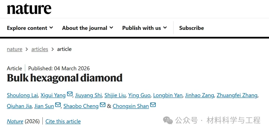 金刚石凭借其最高的硬度、优异的热导率、最快的声传输速度、巨大的禁带宽度、良好的生物兼容性等特点,在磨具磨料、珠宝首饰、散热材料、极端环境光学元件及未来半导体等诸多领域中展现出广阔的应用前景,被誉为“工业牙齿”和“终极半导体”。传统金刚石为立方晶系结构,但1962年,研究者从理论上预测了六方晶系金刚石可能存在。随后,1967年科学家在陨石中发现了一种六方结构的碳同素异形体—六方金刚石,也称为“朗斯代尔石”或“陨石钻石”。理论进一步预言,这种独特的原子堆垛方式赋予其超越立方金刚石的硬度,因而引起了科研人员的广泛关注。然而,天然六方金刚石仅以纳米级颗粒嵌在陨石中,极难分离;其形成源于陨石撞击所产生的极端条件,过程短暂且概率极低。更为关键的是,六方金刚石在实验条件下的形成能垒高于立方金刚石,导致高温高压合成产物多以立方相为主。因此,六方金刚石是否能够独立稳定存在,长期以来一直存在争议,而其本征物性也由于样品尺寸过小,难以通过实验精确测量。这一研究困境直至2025年才取得重要突破:2月,吉林大学刘冰冰教授团队率先报道了六方金刚石块材的合成;同年7月,北京高压科学研究中心毛河光院士团队利用高纯度天然单晶石墨也成功制备出六方金刚石。然而,目前对于六方金刚石的形成机制及其在原子尺度上的精细晶体结构,仍缺乏清晰的认识。