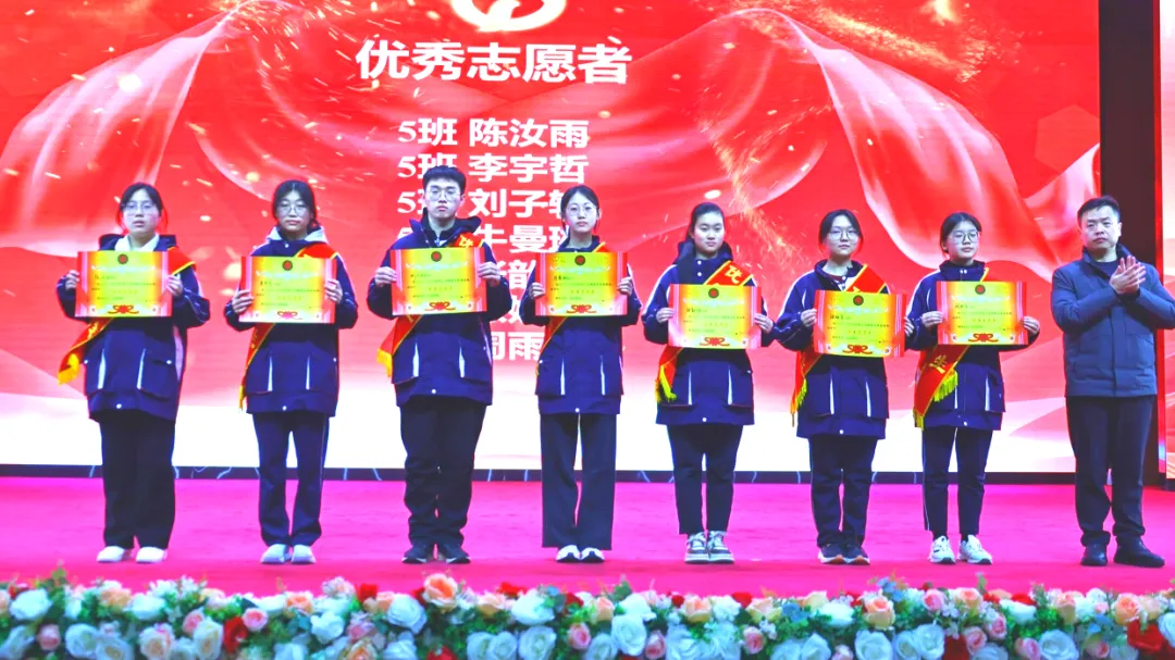 表彰环节是本次仪式的重要环节,学校对在志愿服务、日常表现中脱颖而出的师生予以隆重表彰。7 名优秀志愿者以行动诠释奉献,用坚守书写担当,成为校园里最温暖的风景线;“最美学生” 品学兼优、向善向美,在各方面发挥模范带头作用;张伟婷老师带领学生志愿者躬身实践,以实际行动践行师者责任,尽显志愿温情与教育初心; “最美教师” 深耕教坛、潜心育人,用爱心浇灌成长,用专业助力成才。现场不时响起热烈的掌声,这不仅是对先进者的肯定与喝彩,更是对全体师生的激励与感召。
