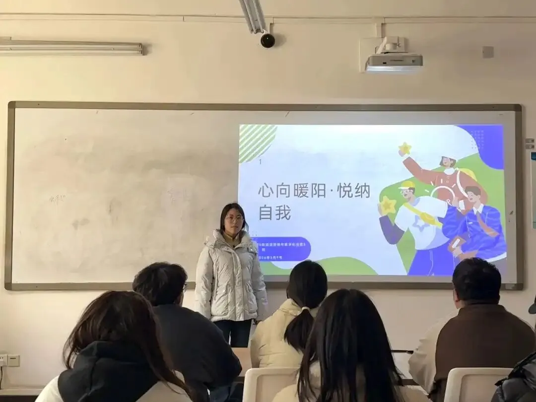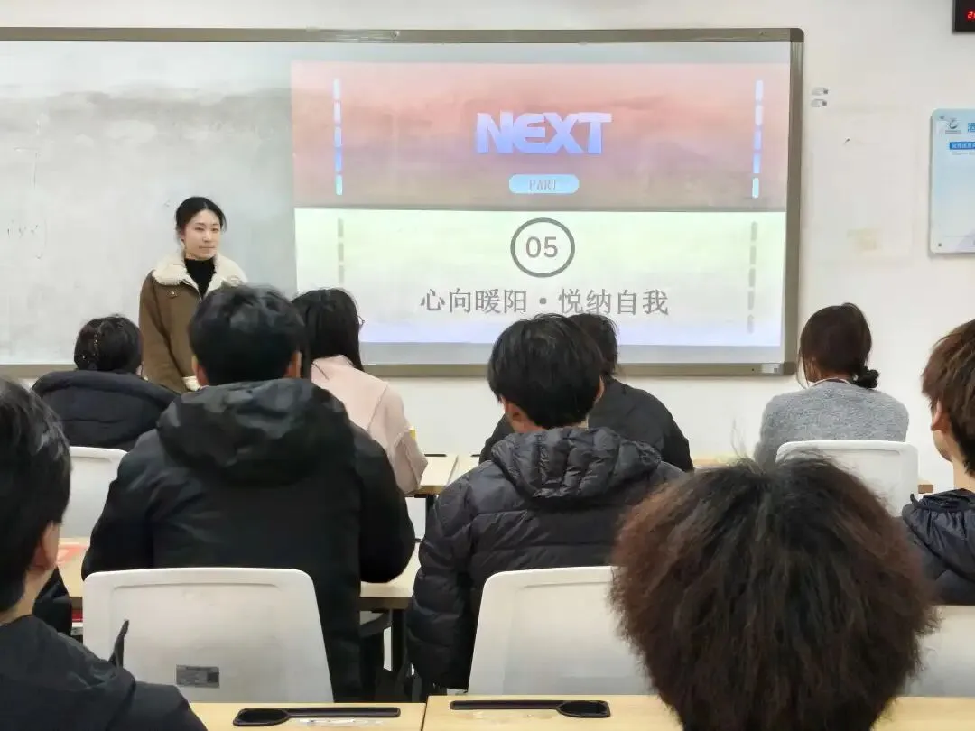 班会上,班主任、心理委员结合当下学生常见的心理困惑,如自我否定、情绪内耗、人际交往焦虑、挫折承受力弱等问题,由浅入深地阐释了本次班会的核心主旨。强调“悦纳自我”不是放任不足、逃避缺点,而是正视自身的不完美,接纳真实的自己,发掘自身闪光点,以平和从容的心态面对生活中的起伏与挑战;“心向暖阳”则是鼓励大家始终怀揣乐观与希望,主动调节情绪,拥抱积极人生,做自己心灵的守护者。同时,借助心理健康科普知识,普及情绪管理、压力疏导、自我接纳的重要性。