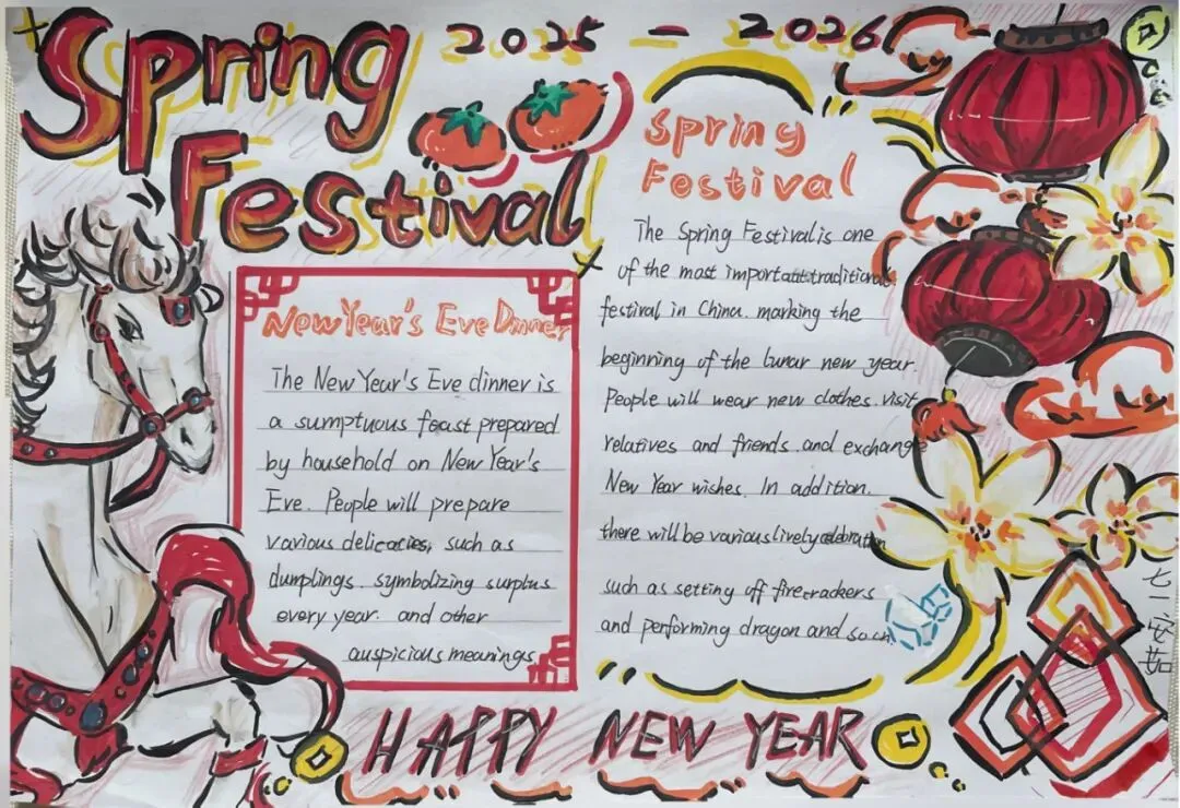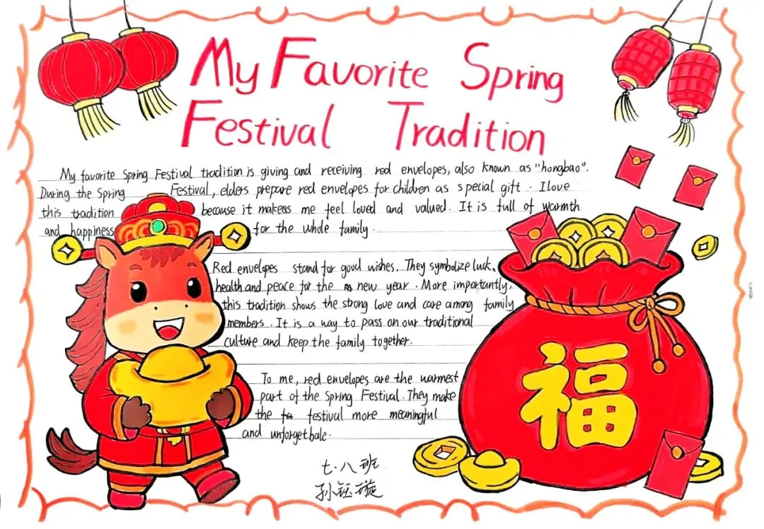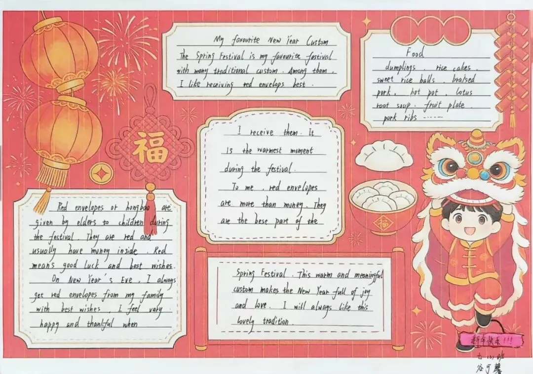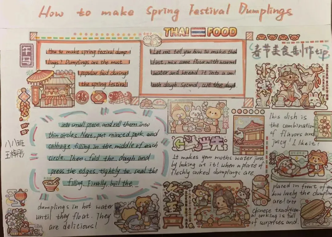 最终呈现的手抄报作品主题鲜明、内容充实、设计精美。英文内容在豆包的辅助润色下,语句通顺、语法正确、表达地道。一张张作品,既是英语学习的成果展示,也是传统文化的创意表达,更体现了智能时代下个性化学习的独特魅力。
