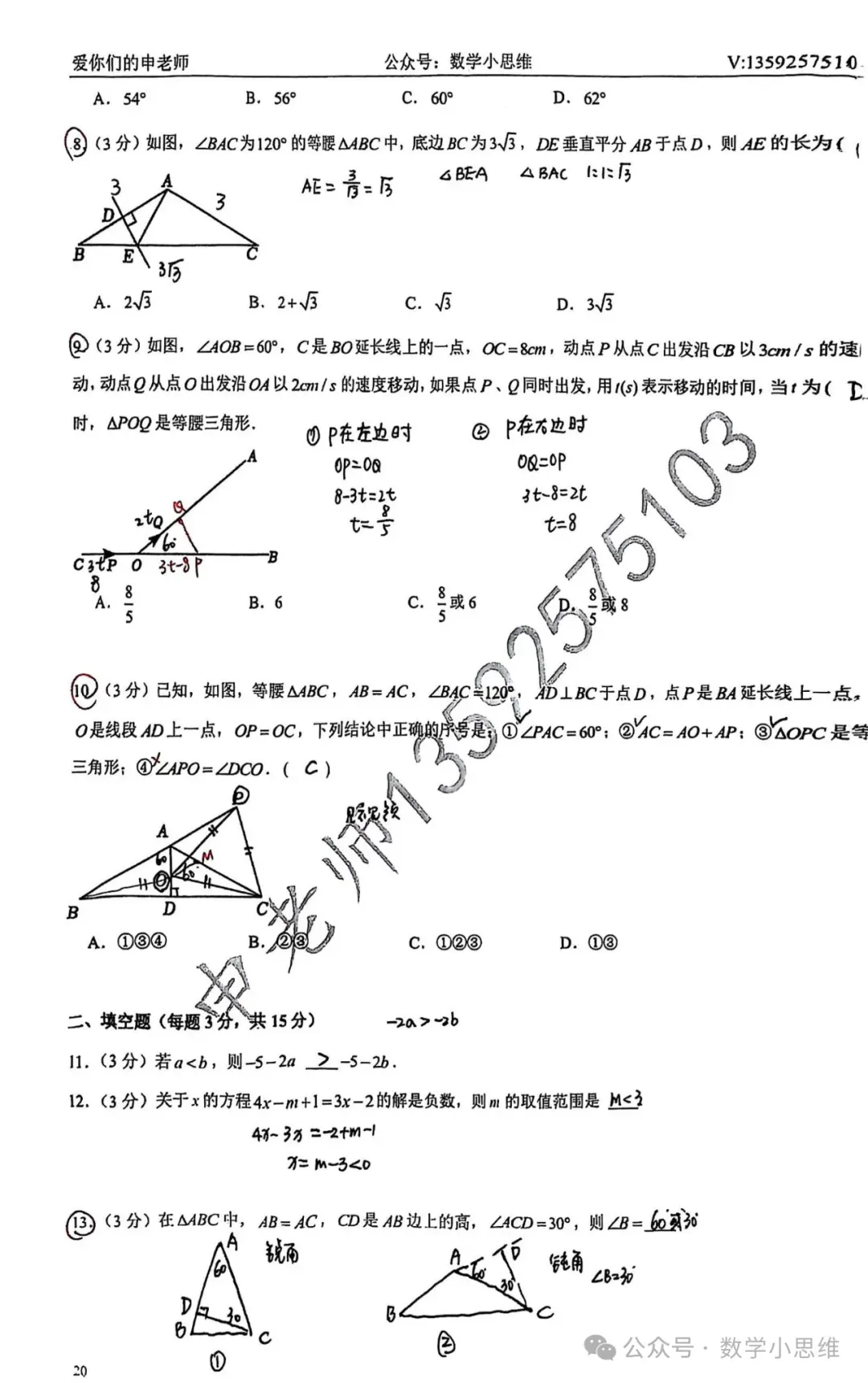 八下培优专题巩固答案及讲解
