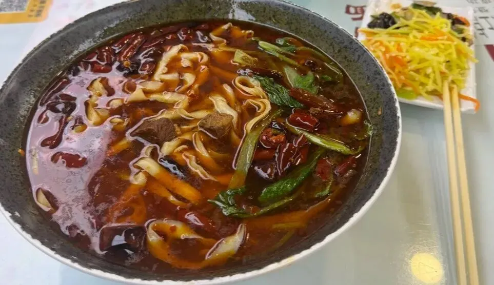 「魏老三削面馆」 价格:15元/大碗 Tips:一定要加一勺老板娘自己炸的辣椒油,配几瓣生蒜。