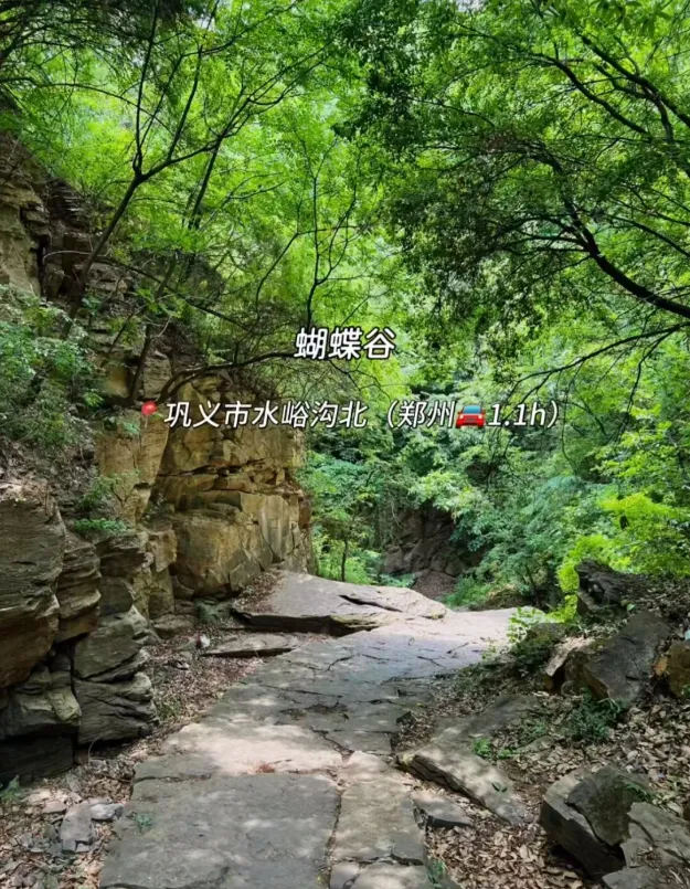 郑州最近的“后花园小山”,坡度超缓,老人小孩走完全程无压力。亮点:山顶有瑶池、草坪、异域风建筑,可喂鱼、散步、拍照,春日绿意满满。4. 巩义蝴蝶谷 | 溪水潺潺,捞鱼摸虾童年快乐