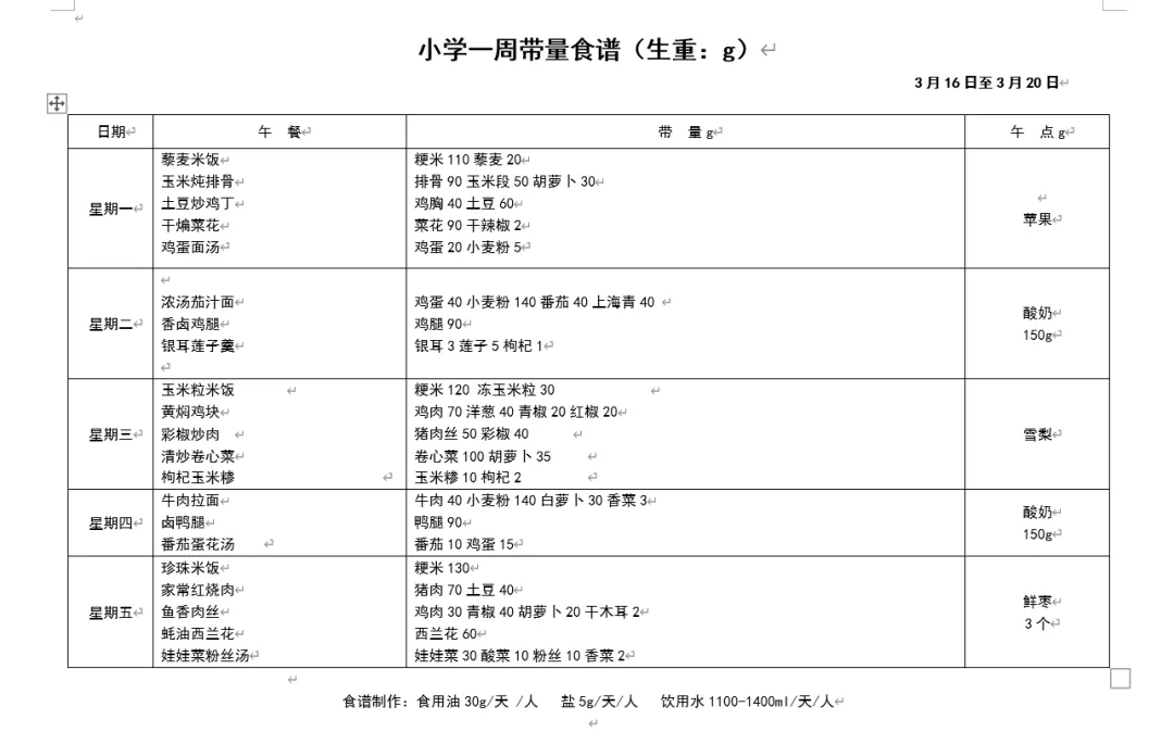 本周食谱