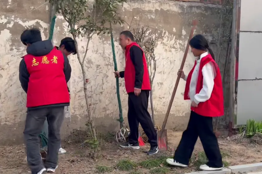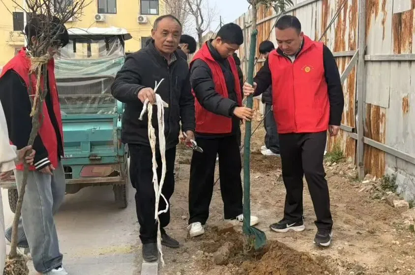 从搬运树苗到扶正固定,从回填泥土到浇水养护,大家齐心协力,让原本空旷的区域渐渐焕发生机。