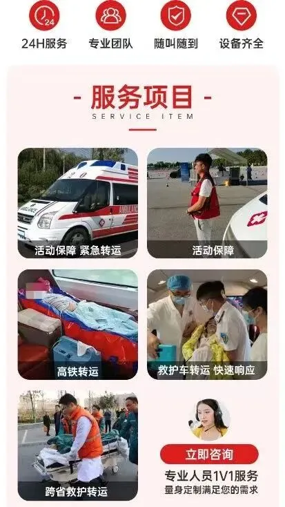 ★ 危重患者:配备ICU级救护车,呼吸机、监护仪、除颤仪全套生命支持设备,重症医护团队全程守护