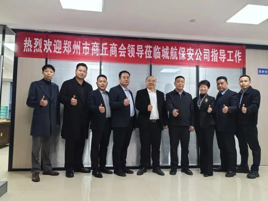 3月11日,郑州市商丘商会会长赵玉民,党支部副书记吴玉珍、轮值会长李学善,执行会长王克杰,副会长张玉学,理事高远、崔三龙一行,走访商会常务副会长单位——河南城航保安服务有限公司,实地考察企业发展情况,倾听会员心声,共话合作与发展。公司总经理、商会常务副会长吴永铜对商会一行的到来表示热烈欢迎,并陪同参观企业运营场所,详细介绍了公司发展历程、团队建设、服务体系与特色安保服务项目。交流中,吴永铜副会长分享了企业在专业安保、专业团队人员打造,智慧安防设计理念、定制化安全保障等方面的经验做法,展现了公司规范运营、精益求精的发展理念。大家听取了企业介绍,深入了解行业现状与企业需求,与会人员就企业经营、商会服务、资源对接等话题坦诚交流、凝聚共识。大家一致表示,将继续依托商会平台,加强信息互通、资源共享、互帮互助,共同为会员企业高质量发展赋能,为郑州与商丘两地经济交流合作贡献力量。