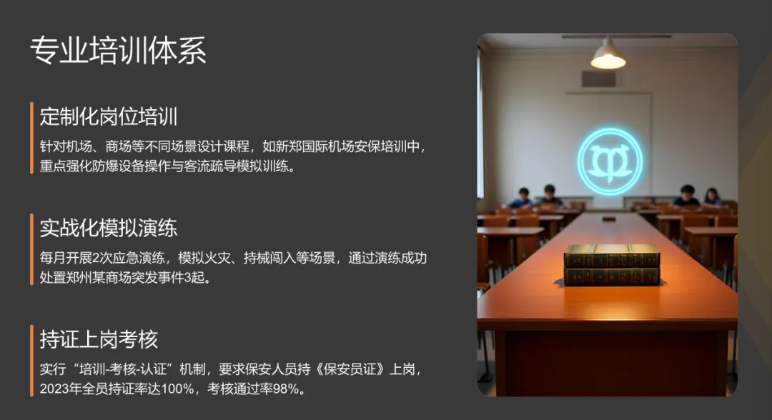 面向未来,城航保安以保一方平安为己任,积极参与市场竞争,迎接挑战,为客户提供专业、优质的安保服务。