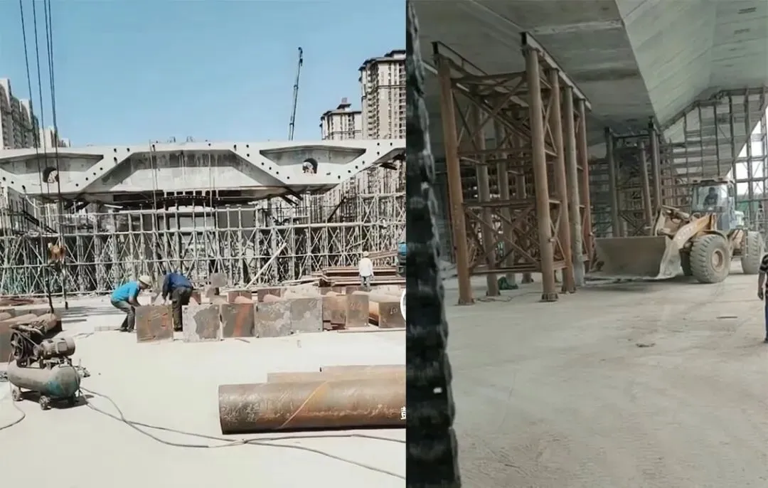 当年为了抢工期,张拉施工工序在没有监理及专业人员现场监督下,通长束钢绞线张拉过程中有多束被拉断,拉断后就未按设计规范张拉到设计拉力,压浆大部分没有压通,钢绞线长期没有专用材料保护,时间长了就会锈蚀断掉,通长束钢绞线张拉多股被拉断的没有退出更换,严重破坏该桥的设计承载力和使用寿命,埋下重大质量安全隐患。