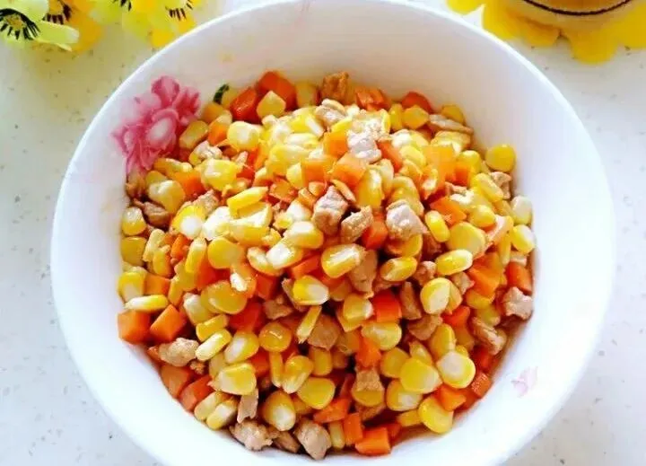 肉丁玉米粒: 瘦肉丁11g玉米粒77g胡萝卜丁11g