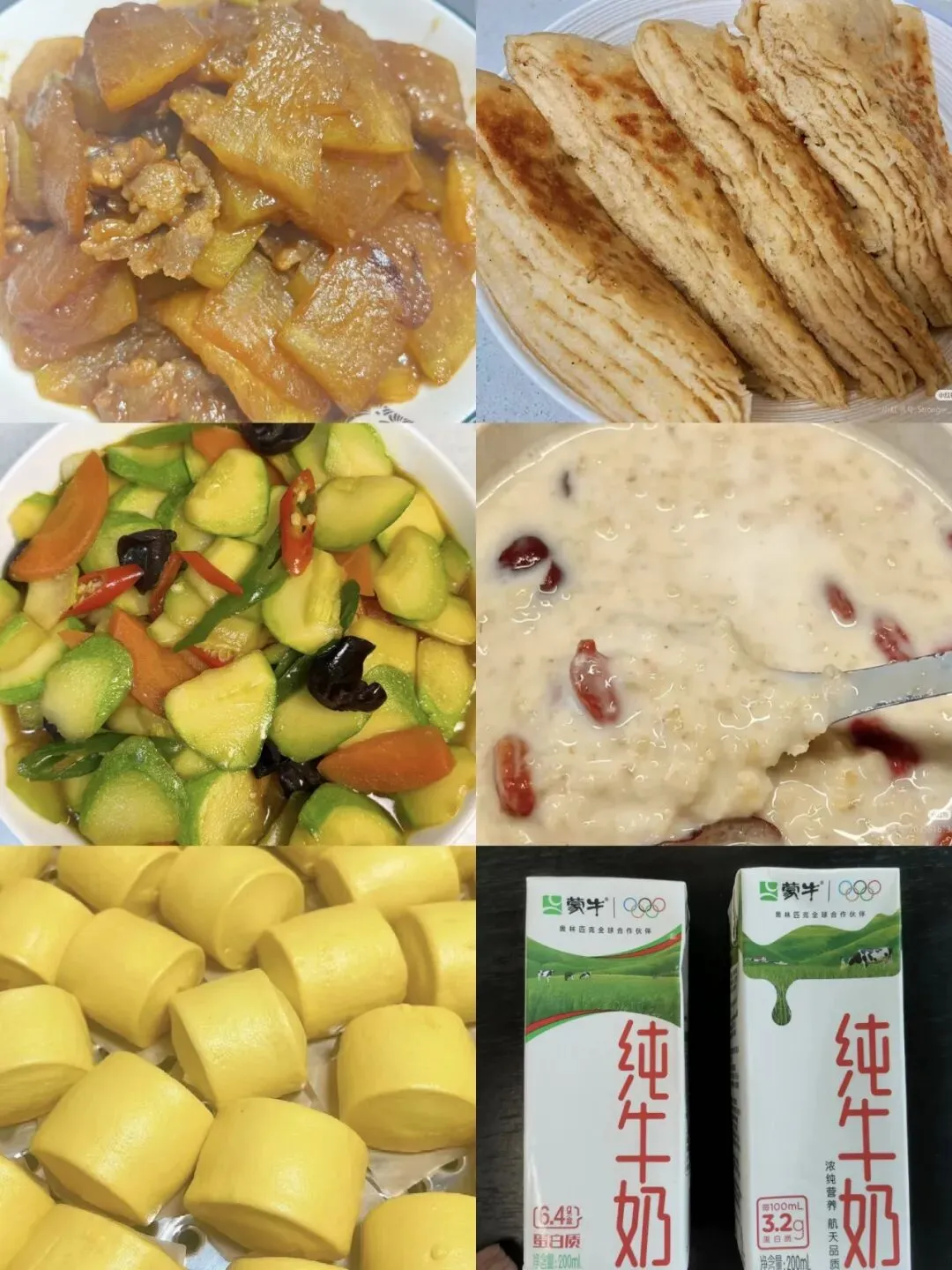 发面千层饼 红枣燕麦粥 纯奶